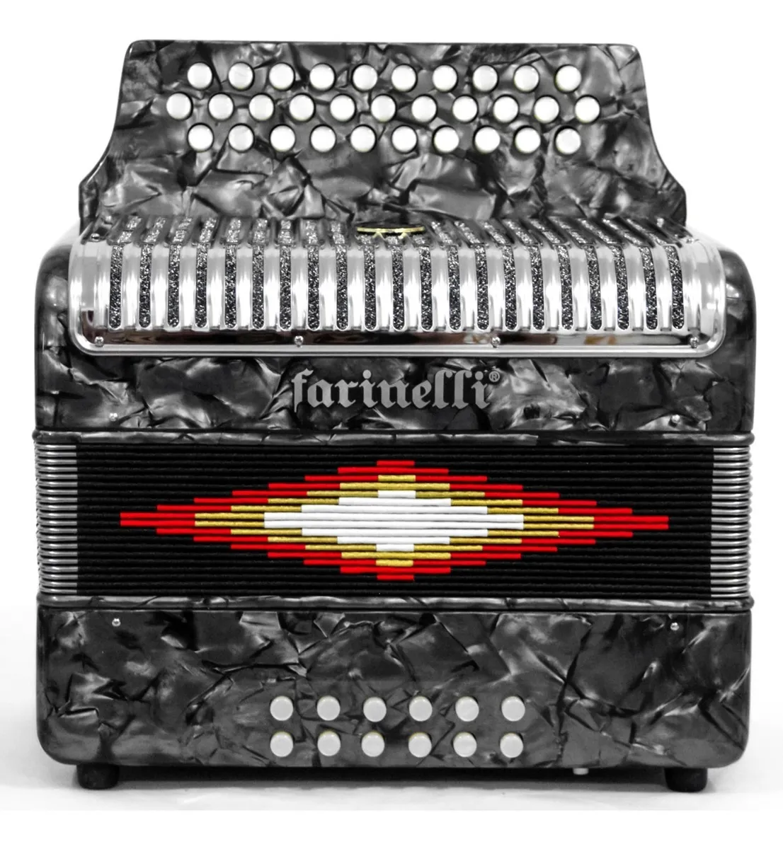 El Acordeón de Botones Farinelli 3012FAGP combina tradición y durabilidad, diseñado para satisfacer las demandas sonoras de géneros populares como la música norteña, cumbia y vallenato. Su configuración clásica de 31 botones en la mano derecha (melodía) proporciona el rango tonal amplio y preciso que se requiere para ejecutar escalas, melodías y complejas ornamentaciones.