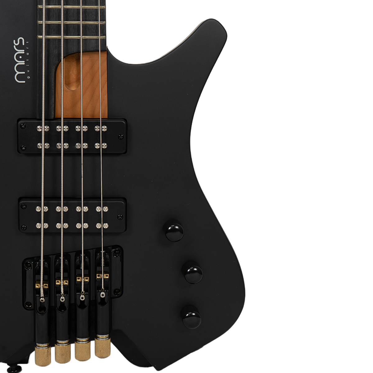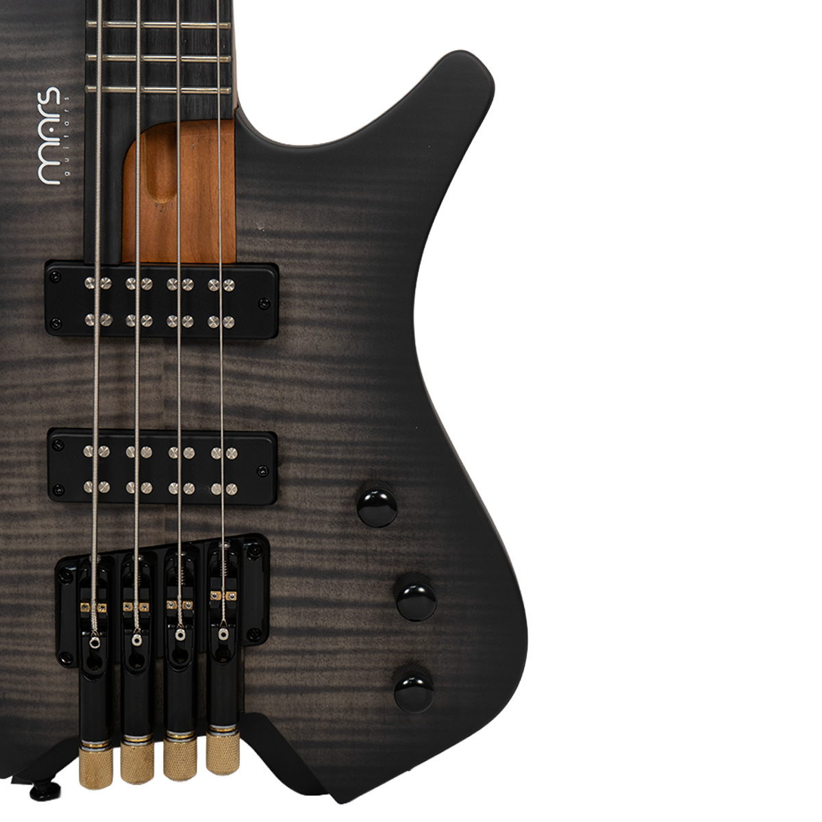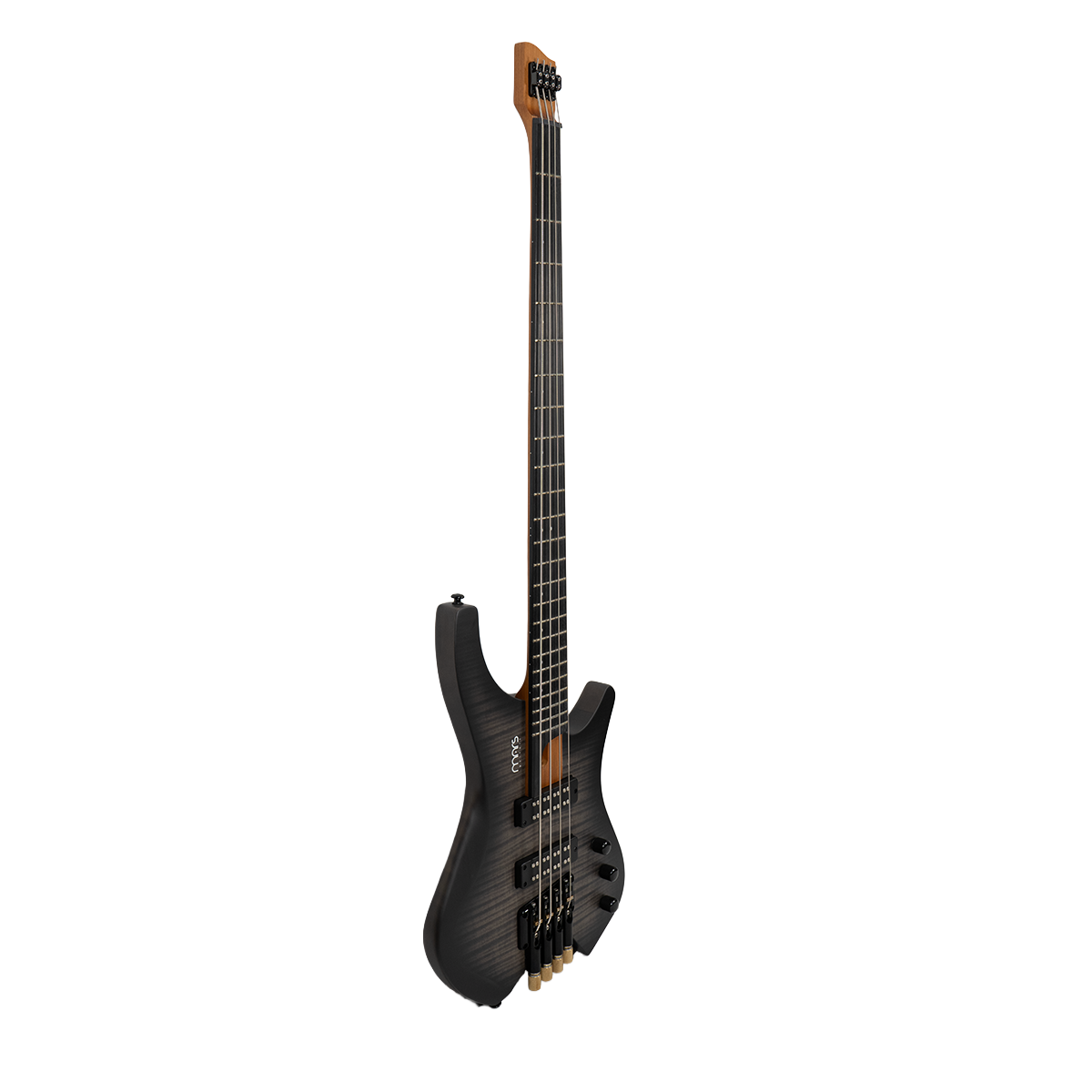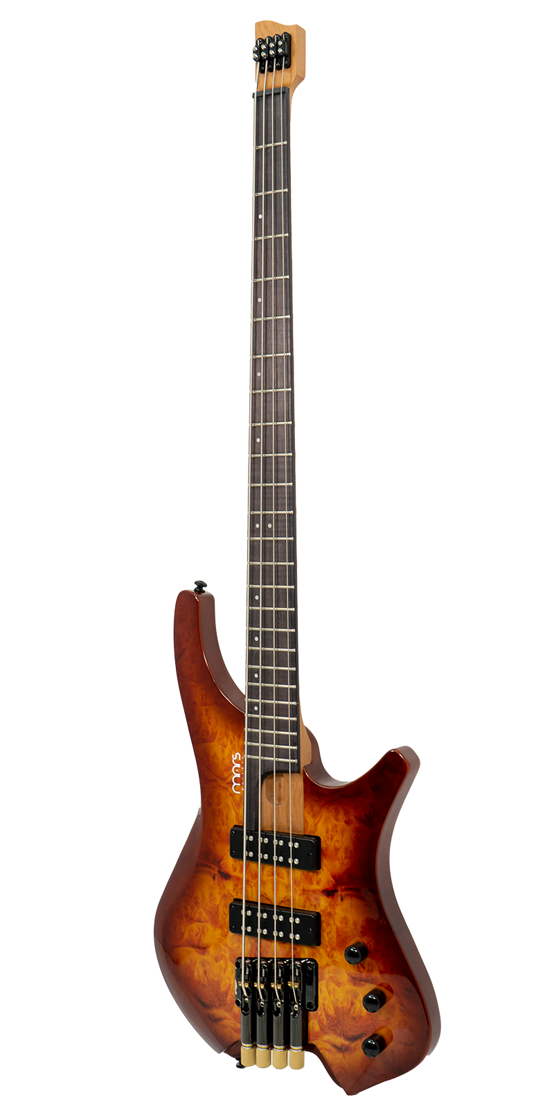 Bajo Mars Headless 4, cuidadosamente diseñado con materiales de alta calidad y detalles excepcionales. El cuerpo está construido en madera de álamo (poplar) combinada con un chapado de arce burl que le otorga un aspecto único y elegante. El mástil de arce canadiense asado, conocido por su durabilidad y tonalidad, con un diseño de mástil atornillado para una mayor estabilidad y comodidad al tocar. El diapasón está hecho de rosewood y presenta un diseño de trastes fan fret, lo que favorece la ergonomía y la facilidad para alcanzar notas altas con mayor comodidad.
