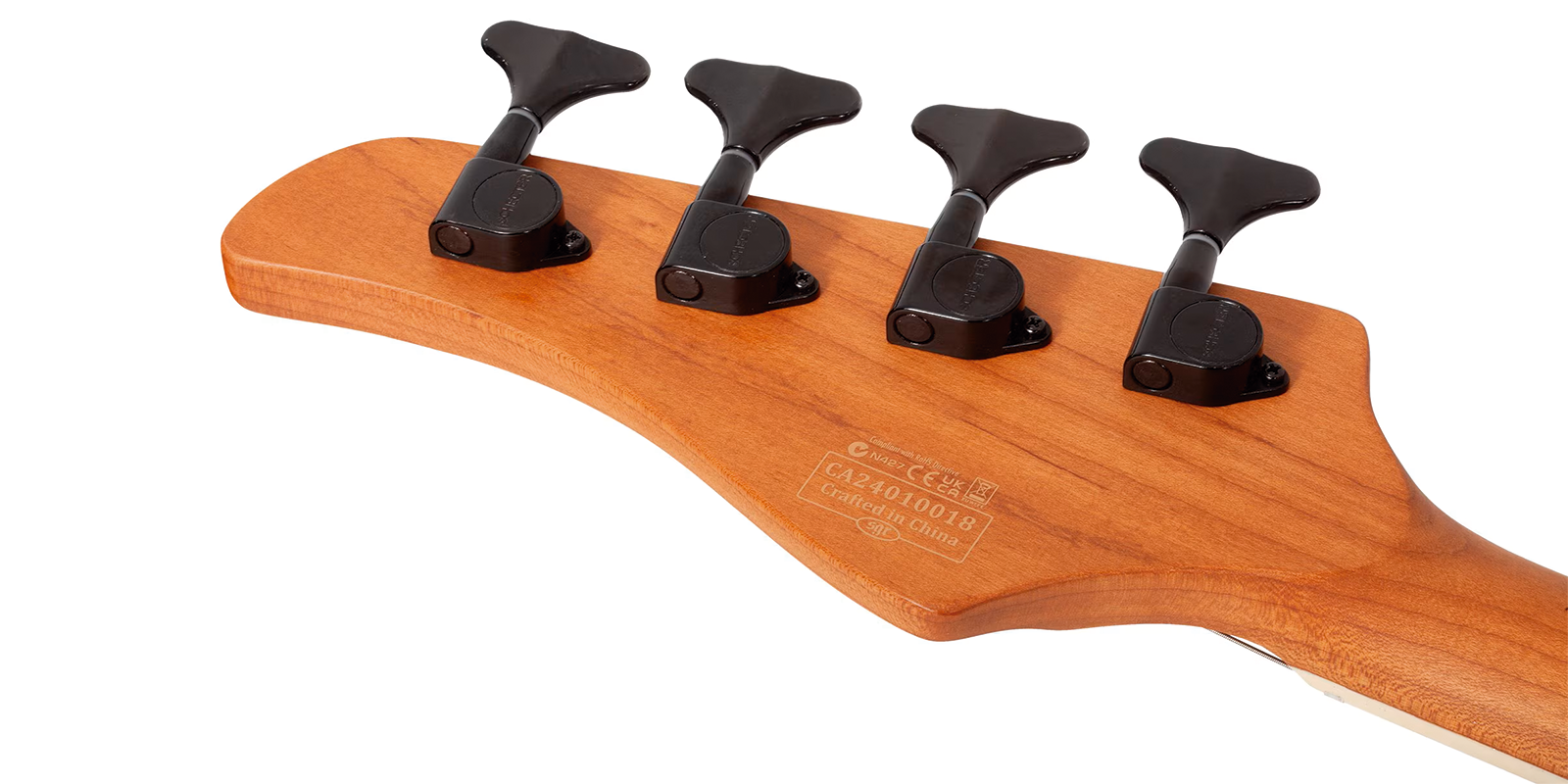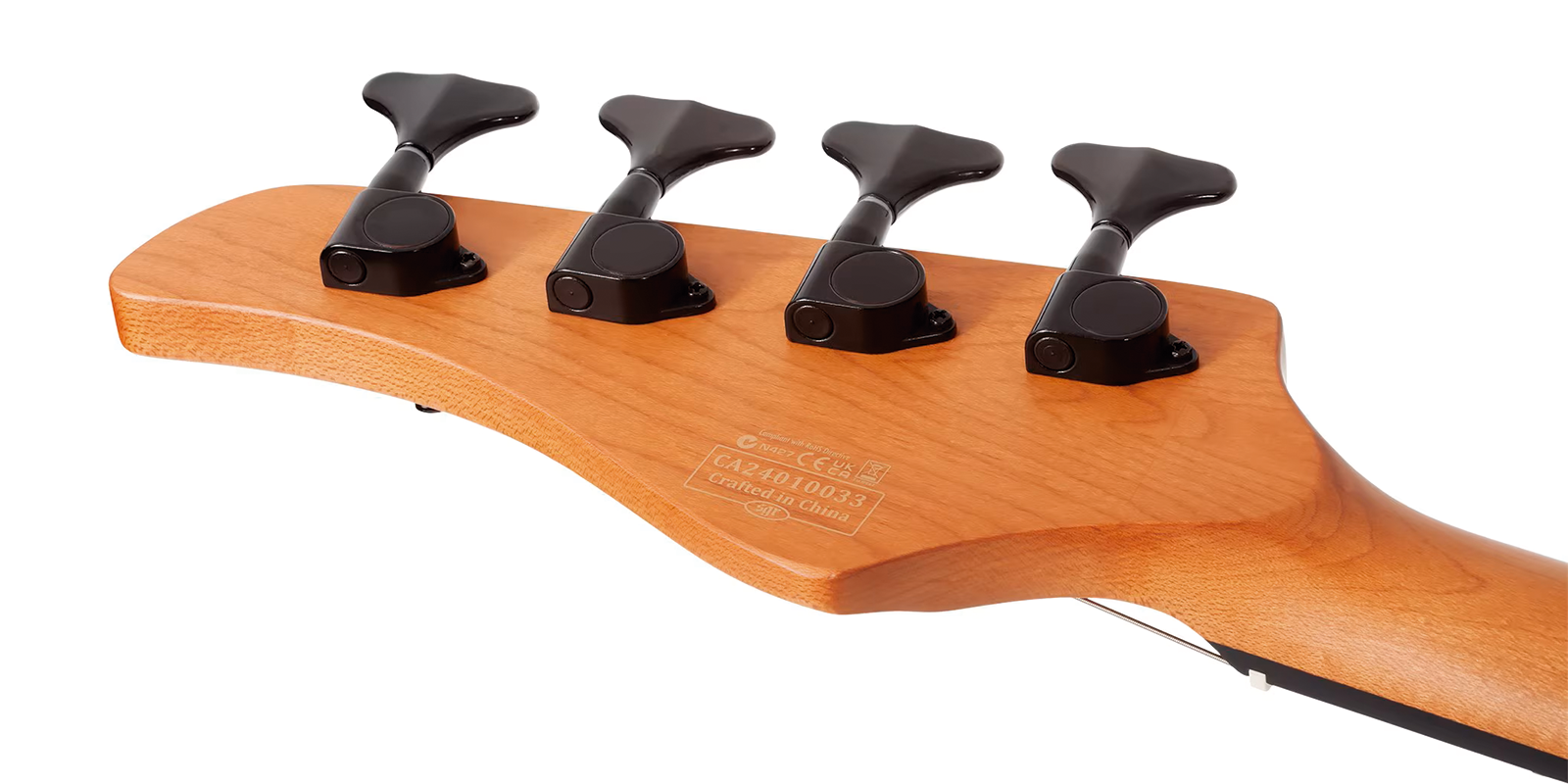 La Schecter Tuners es una guitarra de alto rendimiento, diseñada para músicos que buscan un instrumento versátil y de calidad. El mástil está construido en arce tostado con una forma delgada “C”, lo que proporciona un toque cómodo y rápido. Su radio de diapasón de 16″ y los 24 trastes jumbo permiten una excelente jugabilidad, mientras que el material del diapasón de palosanto ofrece una sensación cálida y suave. Con un ancho de cejuela de 38 mm y un acabado negro en el hardware, este bajo tiene un diseño atractivo y práctico.
