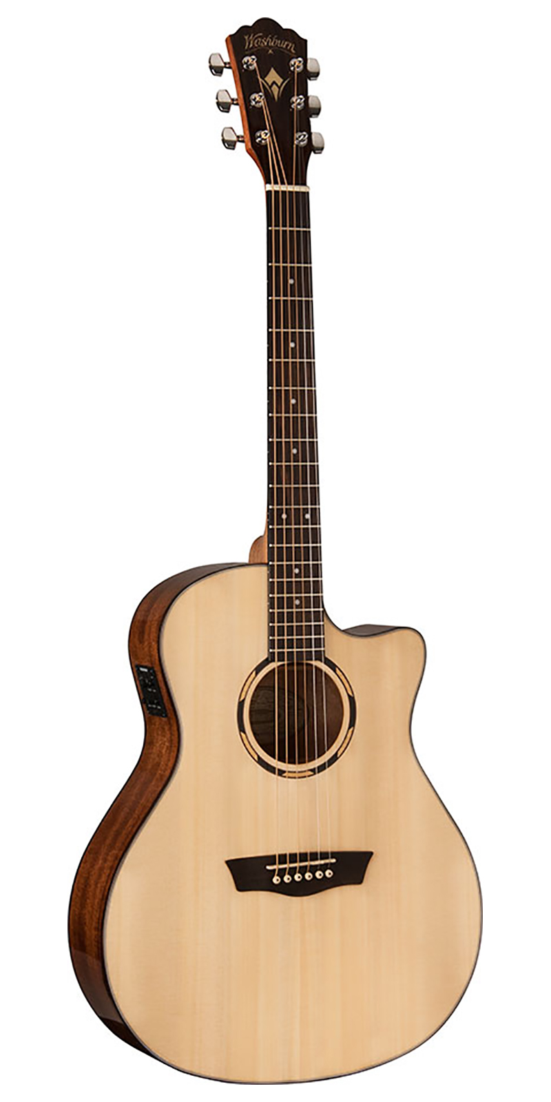 La guitarra O10SCE de la serie Woodline de Washburn es una guitarra electroacústica cutaway tamaño Orquesta con una tapa de abeto sólido, una mezcla de elegancia, musicalidad y asequibilidad. Una caja de resonancia de abeto sólido sitka de grado selecto con refuerzo Cathedral Peak Scalloped-X, junto con aros y fondo de caoba que permiten un excelente tono. Las bajas propiedades de amortiguación de la cejuela y la montura Graph Tech NuBone, maximizan el tono y el carácter de tu guitarra. El preamplificador Fishman® Presys II 301T con afinador integrado crea un tono acústico de sonido natural en situaciones de show. La serie Woodline 10 de Washburn es un equilibrio perfecto entre asequibilidad, elegancia, sonido y estabilidad. Tu guitarra es una expresión de individualidad, composiciones, técnicas con dedos, en la iglesia o en el escenario, esta es la guitarra perfecta para ti.