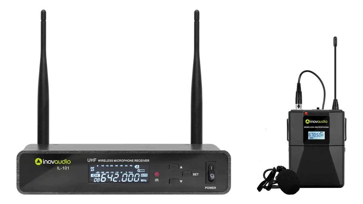 IL-101, micrófono inalámbrico con transmisor bodypack, diseñado para ofrecer una experiencia de sonido excepcional y libertad de movimiento. Este conjunto incluye un micrófono lavalier, ideal para presentaciones, conferencias o actuaciones donde la calidad de audio es clave. El transmisor bodypack funciona con dos pilas AA de 1.5V, proporcionando una duración de batería de hasta 5 horas, lo que lo hace perfecto para eventos prolongados. Su micrófono lavalier tiene una respuesta en frecuencia de 40Hz a 18KHz, garantizando un sonido nítido y claro. El receptor cuenta con 100 canales y la función Auto Scan en la banda de 640-690 MHz, lo que permite una fácil selección de frecuencia y evita interferencias. Con una distancia de transmisión de hasta 60 metros en áreas libres, tendrás la libertad de moverte sin restricciones. El paquete incluye todo lo necesario para comenzar: receptor, body pack, cable TS, cable Mini XLR-TS, adaptador de corriente, dos baterías AA de 1.5V, un manual de usuario y un micrófono Lavalier. El micrófono lavalier se incluye para una mayor comodidad y versatilidad. Este sistema es la elección perfecta para quienes buscan calidad de sonido y facilidad de uso en cada presentación.