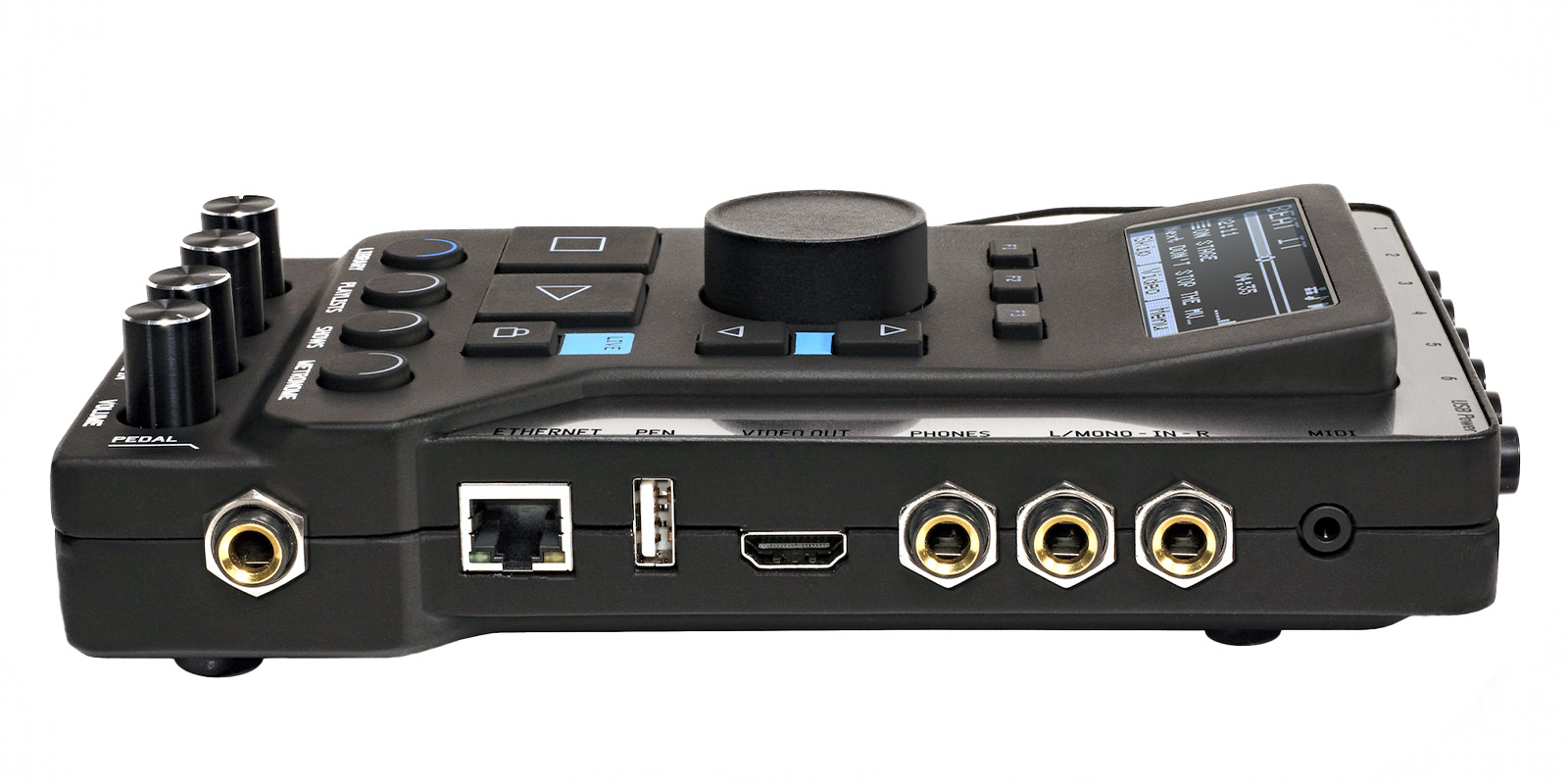 con 4 cómodos potenciómetros el músico puede equilibrar en tiempo real lo que quiere escuchar en los auriculares durante la actuación.