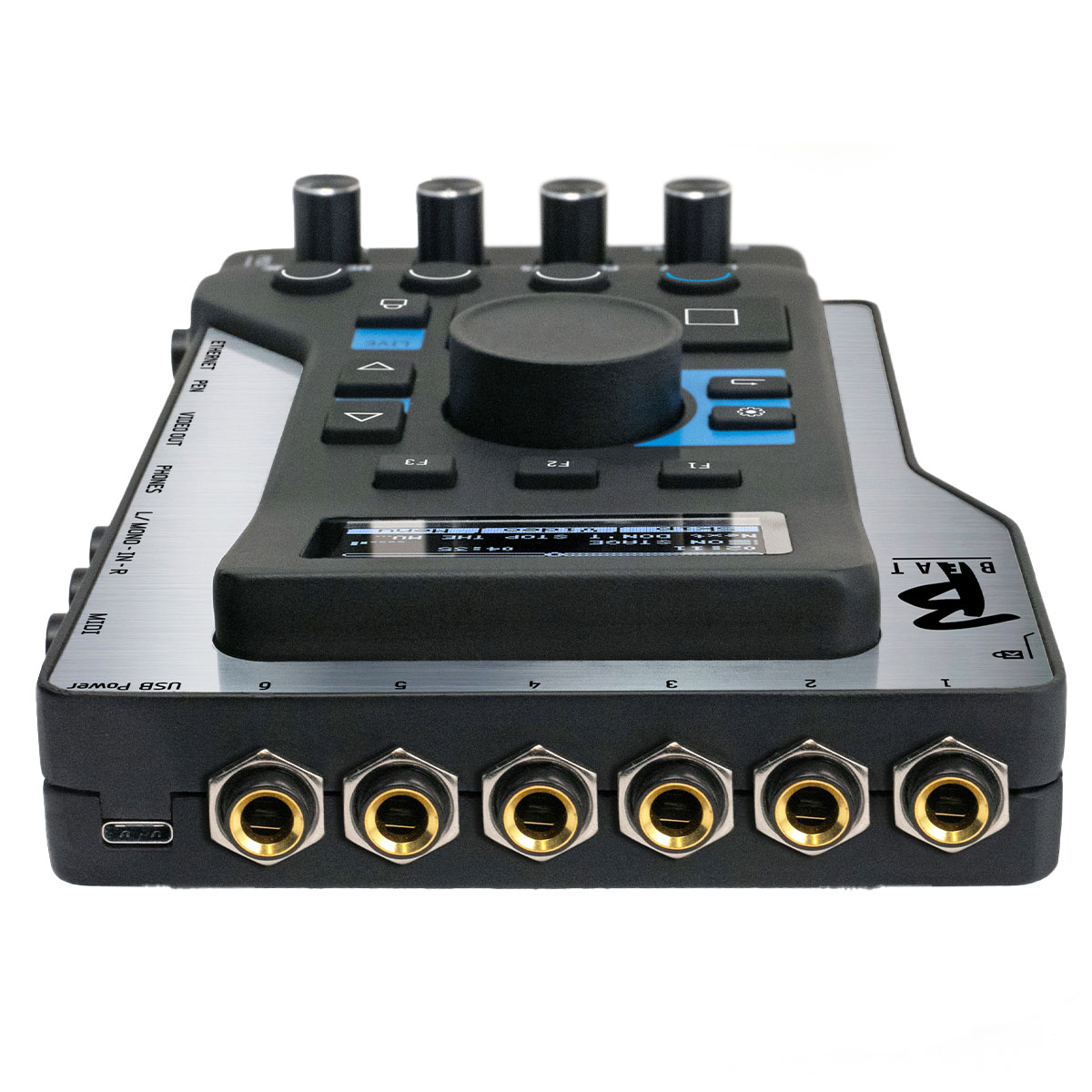 Con B.Beat no es necesario traer Computadoras, Tabletas, Tarjetas de Audio y Video, Cables, Mezcladoras al escenario:B.Beat resuelve la duda en unos pocos cms. cuadrados y 600 gr. de peso