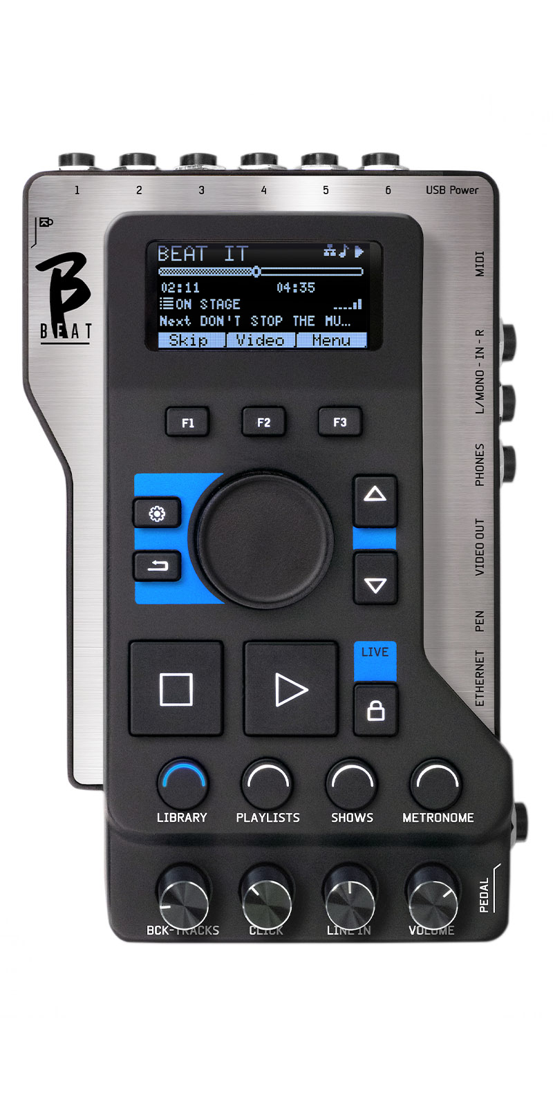 La filosofía que inspiró a B.Beat es simplificar la gestión de Backing tracks y Videos durante un Show.