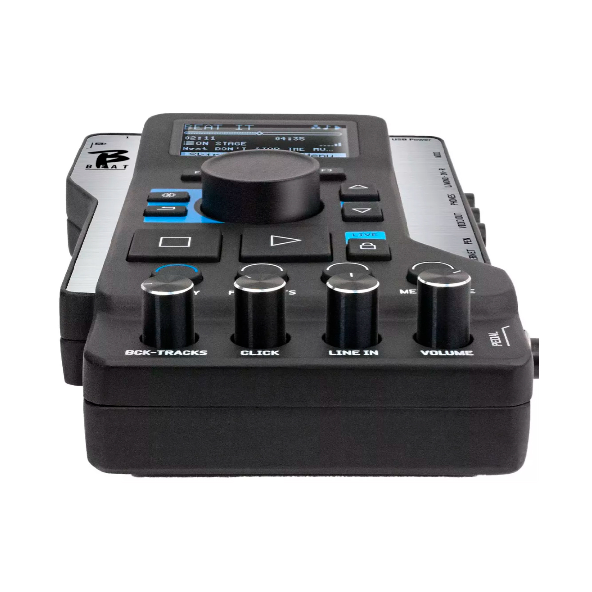 B.Beat es el dispositivo perfecto para mejorar y simplificar las actuaciones en vivo de bandas utilizando secuencias estéreo o multipistas, incluso con videos e imágenes. Con B.Beat en el escenario ya no necesitas computadoras, tabletas, tarjetas de audio/video, cables, mezcladoras: B.Beat gestiona las secuencias y te permite disfrutar del placer de jugar, sin dudas.