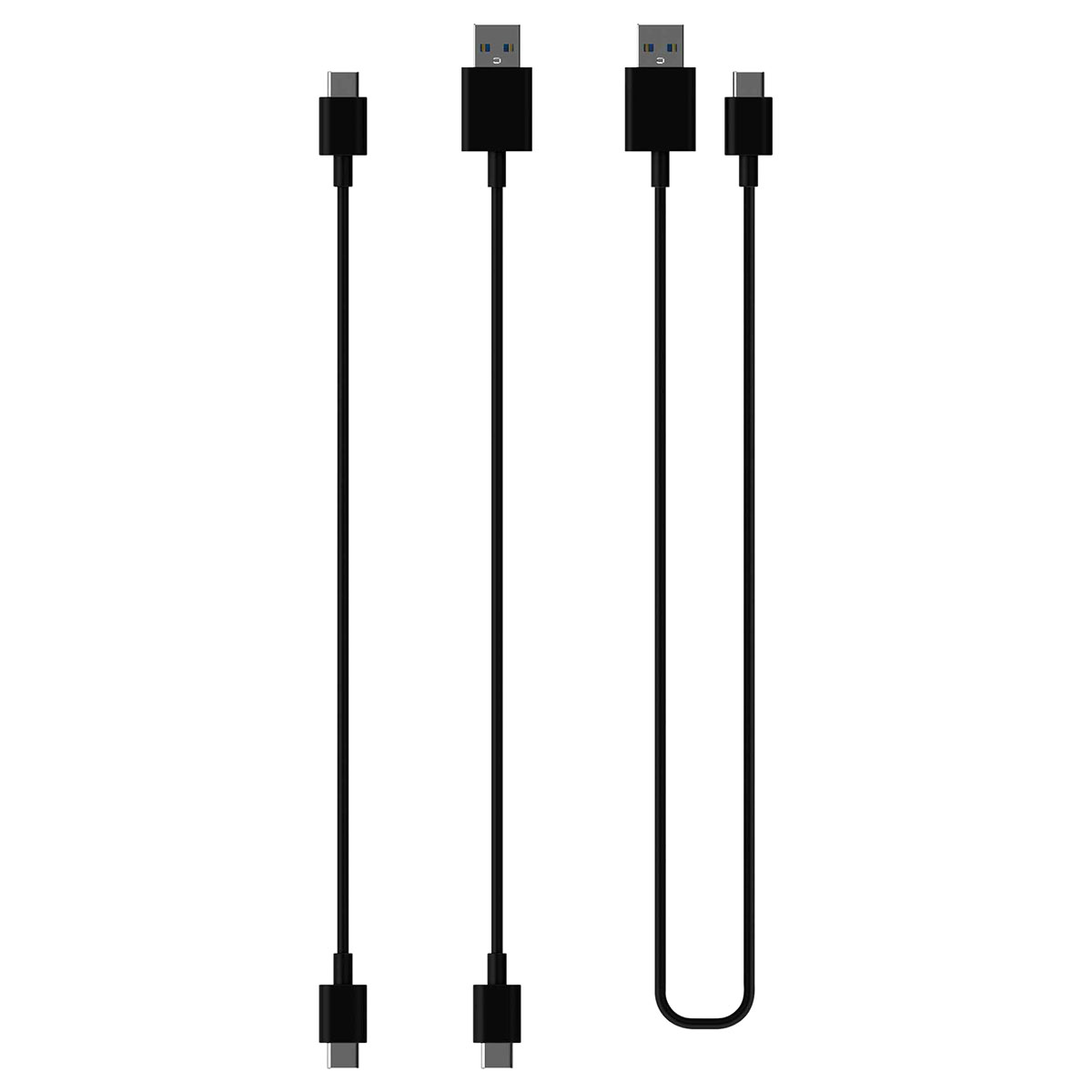 Bolsa protectora para un transporte seguro y cables de conexión: USB C a C (30 cm), USB C a A (25 cm) y USB C a A (50 cm).