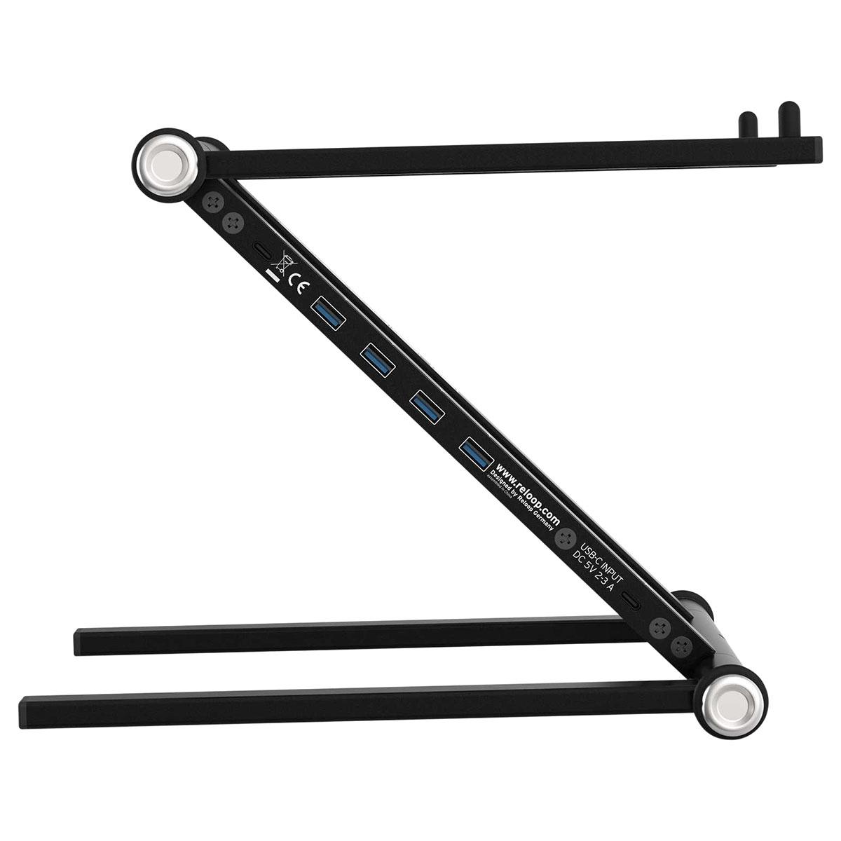 La primera combinación de un soporte multifuncional para laptop con un concentrador USB avanzado con soporte de suministro de energía.