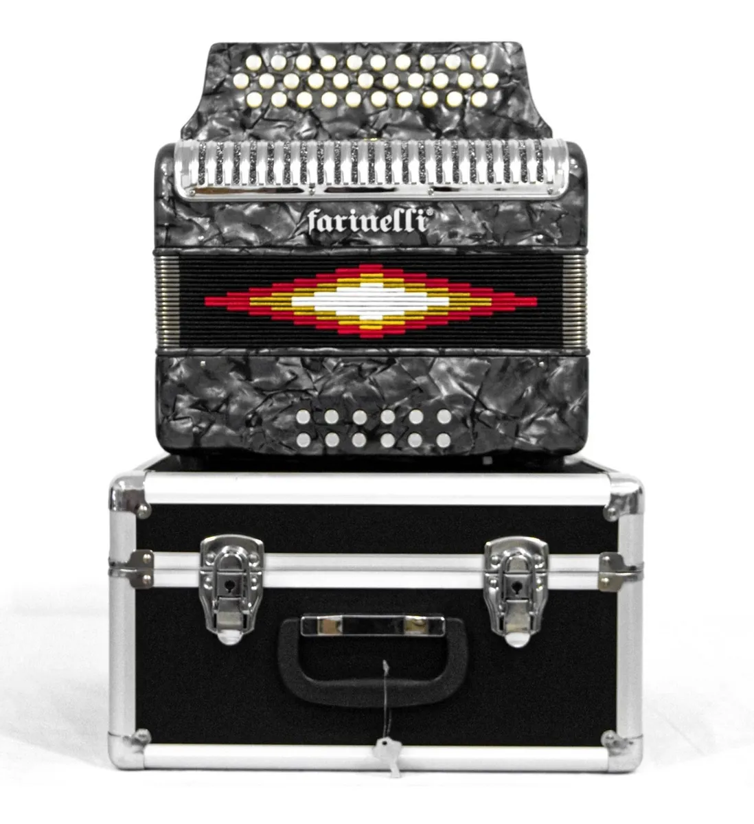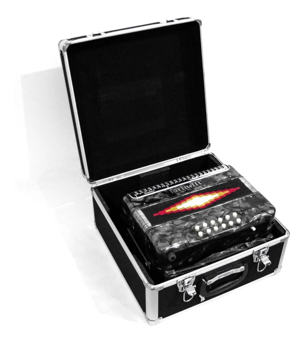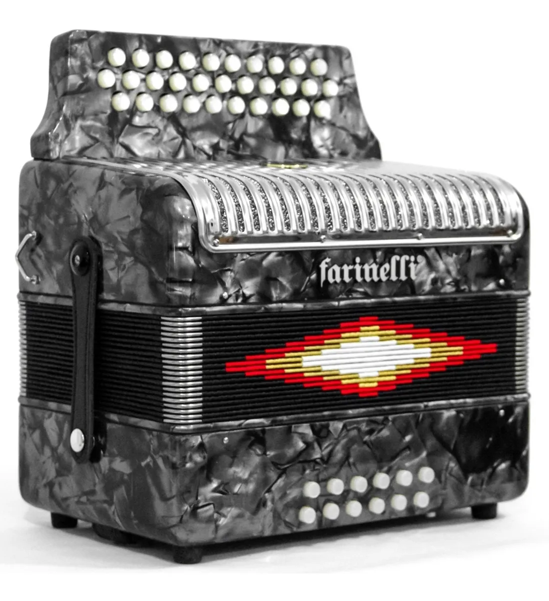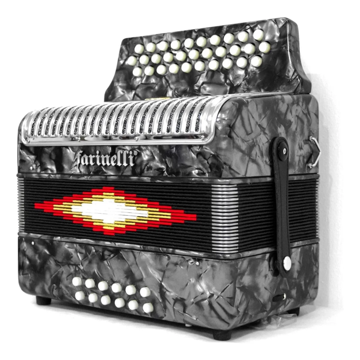 El Acordeón de Botones Farinelli 3012FAGP combina tradición y durabilidad, diseñado para satisfacer las demandas sonoras de géneros populares como la música norteña, cumbia y vallenato. Su configuración clásica de 31 botones en la mano derecha (melodía) proporciona el rango tonal amplio y preciso que se requiere para ejecutar escalas, melodías y complejas ornamentaciones.