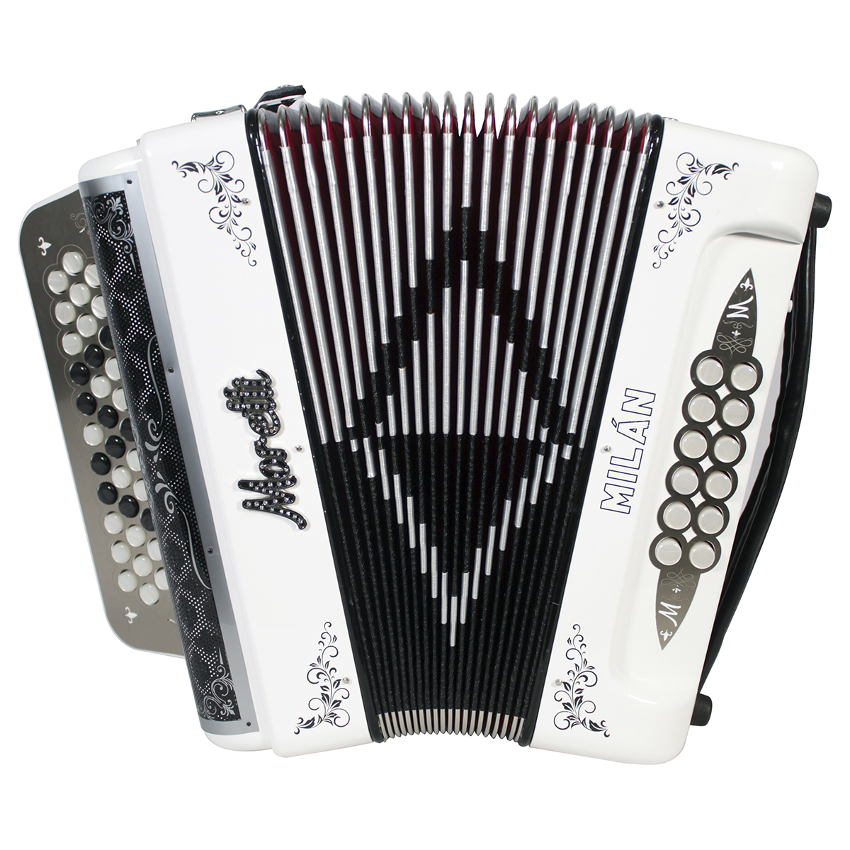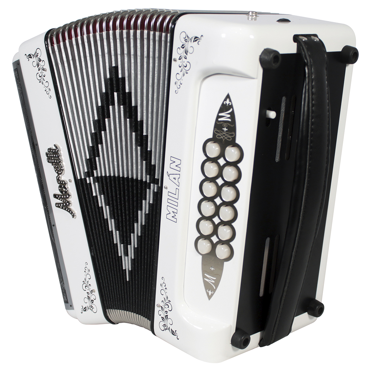 Acordeon Moretti Milan 34 Botones 3 Registros Tono de Sol Blanco 34 botones