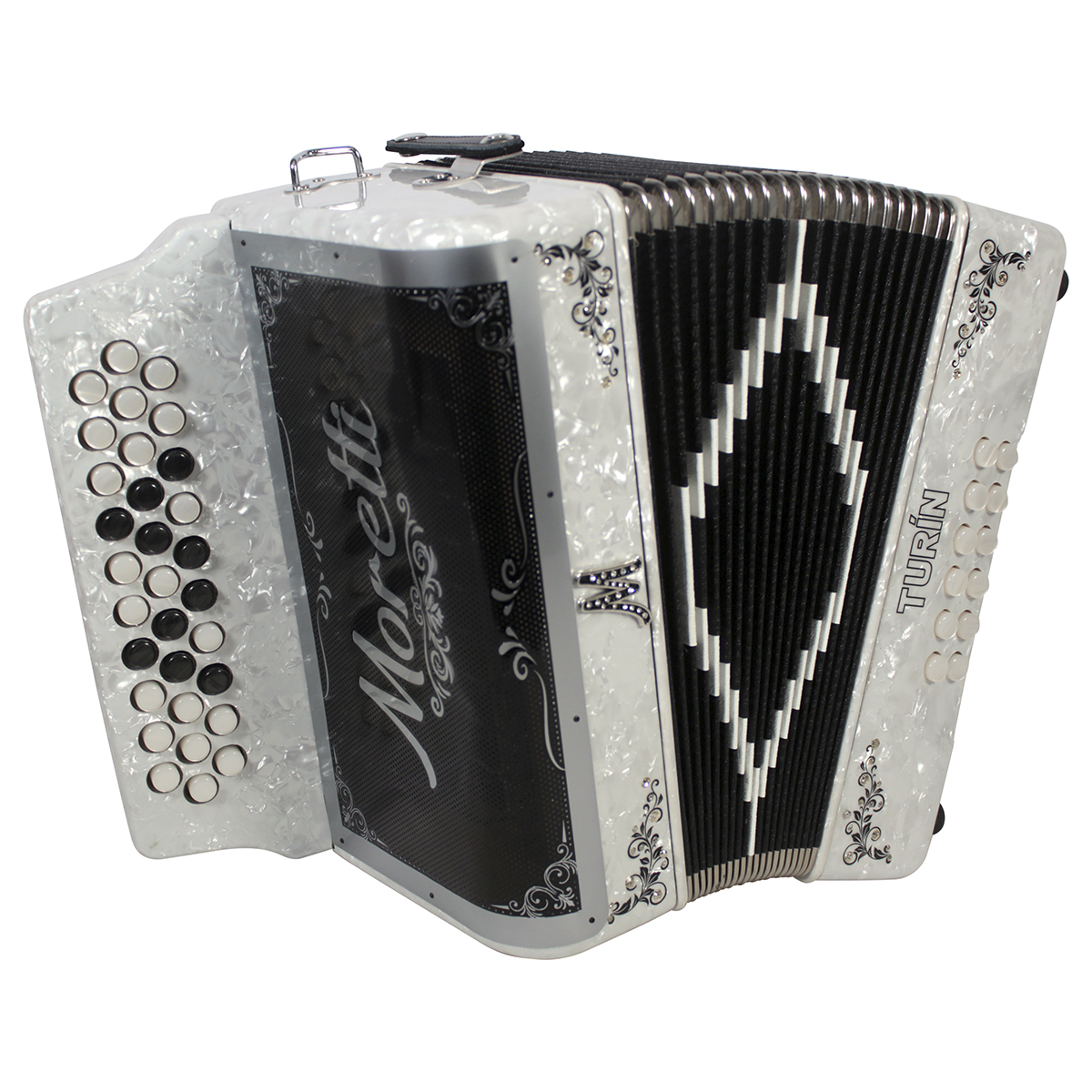Con el nuevo acordeón Turin de Moretti, tendrás en tus manos un gran sonido, una resonancia natural y toda la experiencia en la fabricación de acordeones. Es ideal para diversos géneros musicales y cuenta con exclusivos diseños que te harán brillar en el escenario. Moretti cuenta con un excelente control de calidad, por lo que tus instrumentos están elaborados con el mayor cuidado y el mejor sonido que podrás encontrar en acordeones en este rango de precio.