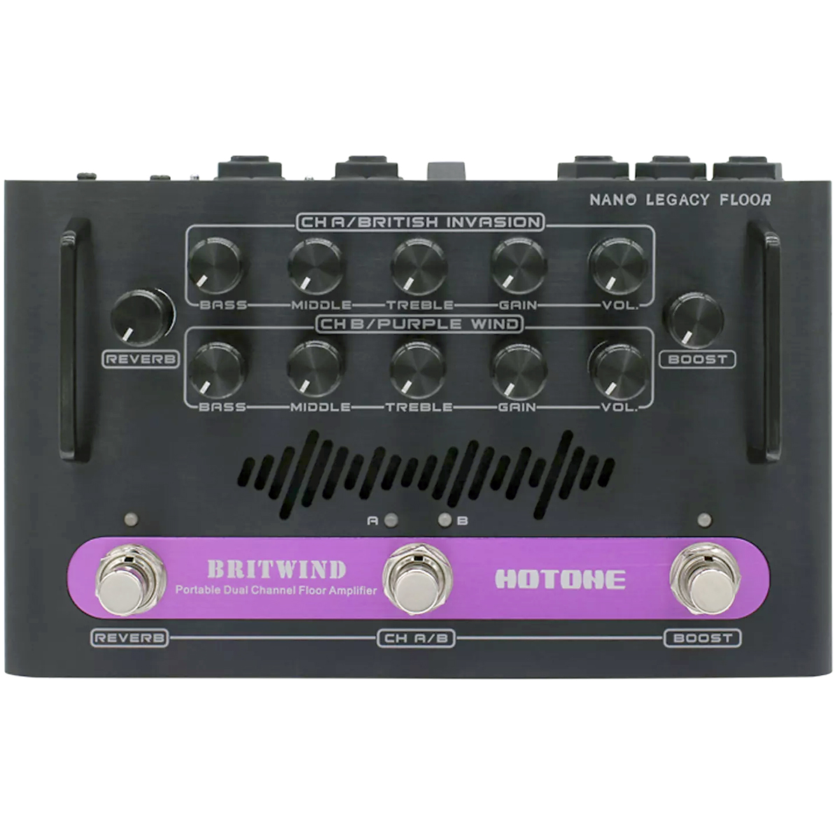 Combina los 2 amplificadores Nano Legacy más vendidos en uno. Canal 1: Hotone British Invasion, inspirado en el legendario Vox AC30. Canal 2: Hotone Purple Wind, inspirado en el legendario Marshall® Plexi Super Lead 1959.