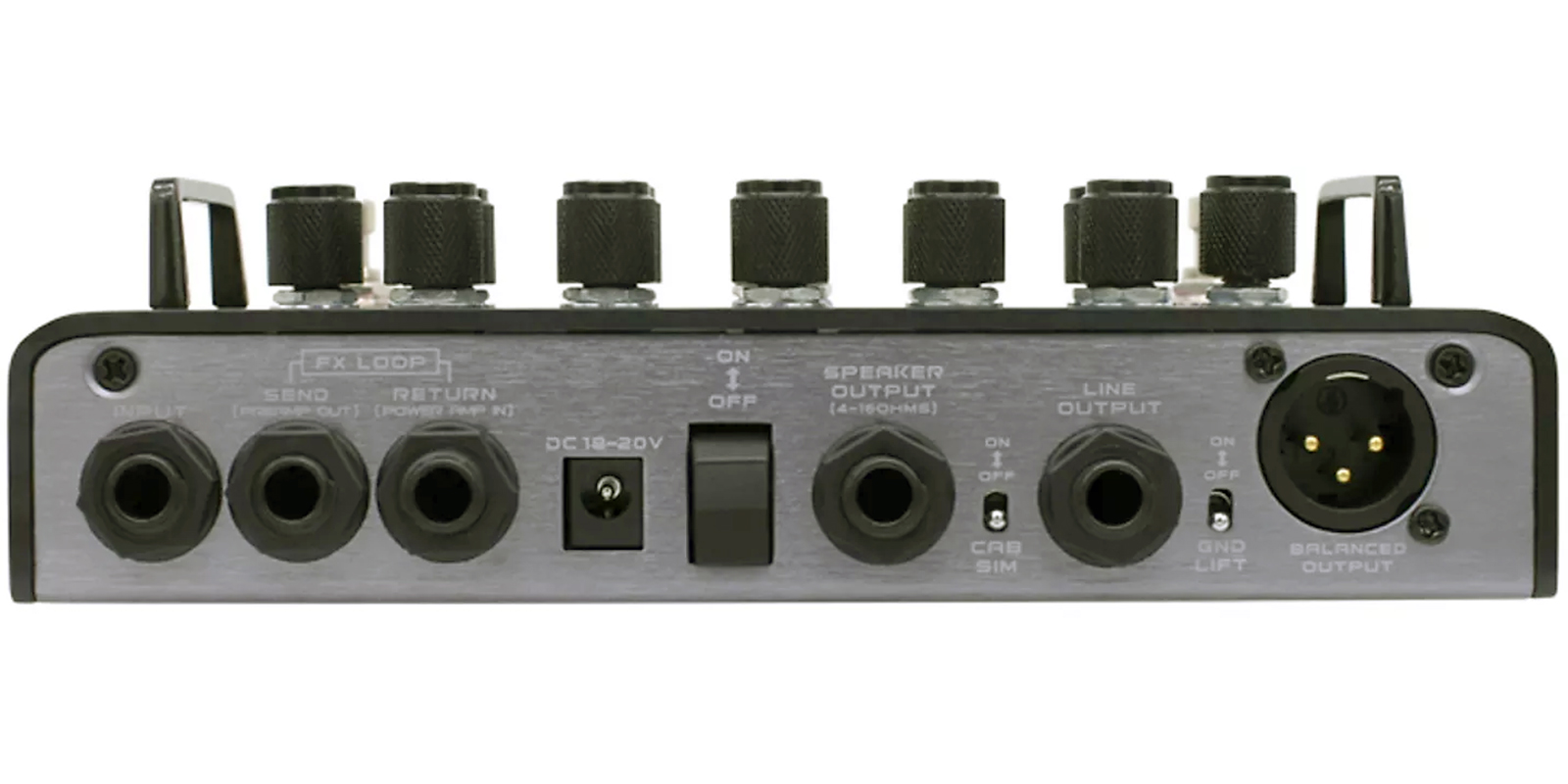 Envío: Jack de 1/4″ que envía la señal a la entrada jack de la unidad de efectos conectada (El loop de efectos es un punto de ruta entre el preamp y el amplificador). Retorno: Jack de 1/4″ que conecta la salida jack de la unidad de efectos conectada.