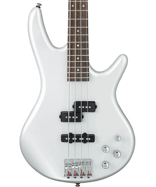 Diseño y Ejecución: El bajo cuenta con el mástil GSR4 de Ibanez, conocido por su perfil delgado que favorece la velocidad. El acabado Blanco Aperlado (Pearl White) le da una estética llamativa y profesional en el escenario, y el hardware cromado garantiza una afinación estable.