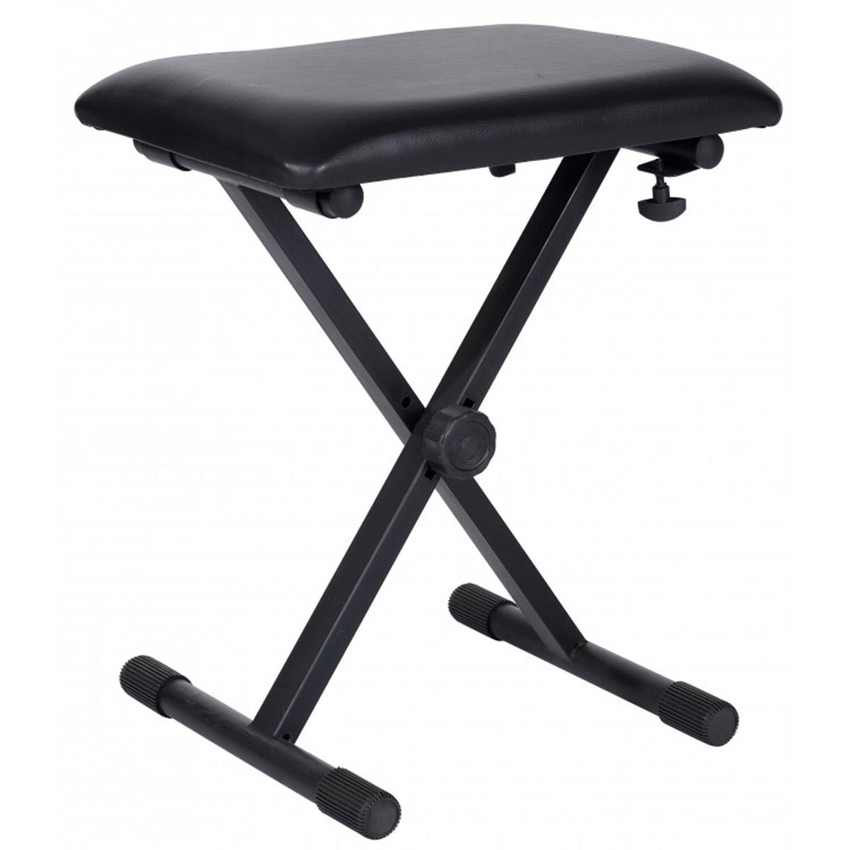 Banco para tecladista, altura ajustable, 3 posiciones, base: 450 mm, altura mínima: 490 mm, altura máxima: 560 mm, asiento: 400 x 300 mm, peso: 3 kg, carga máxima: 100 kg.