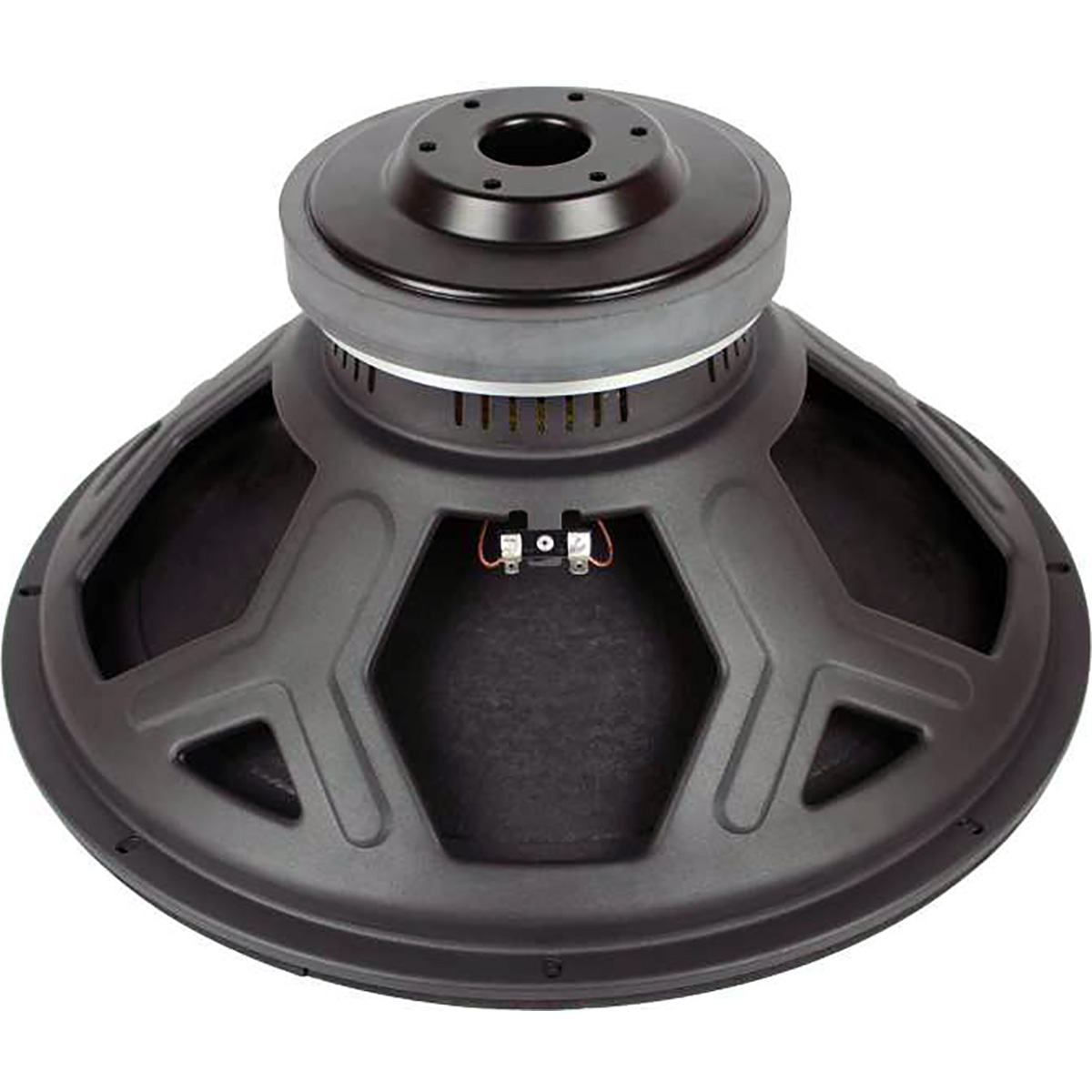 Altavoz de 18” pulgadas de baja distorsión con 1,200 watts programa y funcionamiento a 8 ohms, cuenta con exclusiva tecnología de enfriamiento Malt Cross y alta sensibilidad de 98 dB, circuito magnético optimizado de ferrita, ruido de aire ultra bajo, diseñado con tecnología MMSS, comportamiento no lineal optimizado, cono resistente al agua con tratamiento en ambos lados del cono, bobina móvil de 3” pulgadas, canasta optimizada de acero prensado, desplazamiento controlado extendido: ± 8,5 mm, excursión pico a pico de 53 mm antes del daño, optimizado para aplicaciones de subwoofer de radiación directa.