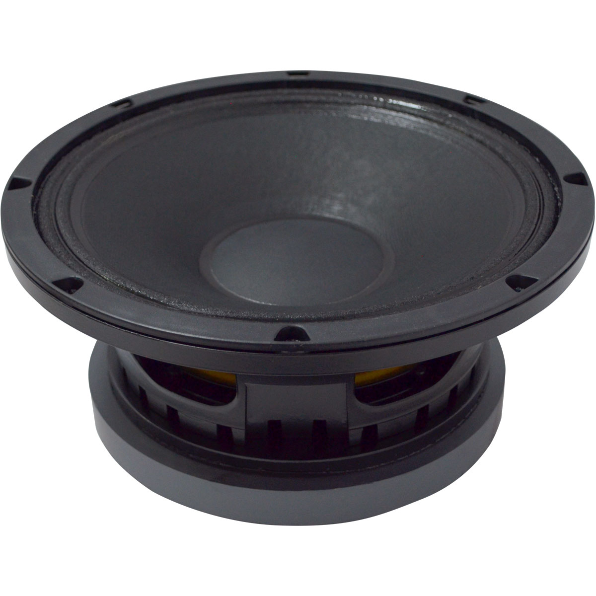 El transductor de bajos graves-medios 10MB600 de Eighteen Sound representa un desarrollo del rango medio del altavoz 10M600, que combina una excelente linealidad con una alta eficiencia y capacidades de manejo de alta potencia. El 10MB600 está destinado principalmente para uso como driver de paso medio en recintos de 2 vías extremadamente compactos entre 10 y 40 lt. Su cono de papel curvilíneo se forma con una pasta de madera especial de alta resistencia, diseñada para lograr la mejor rigidez posible. También se aplica un tratamiento exclusivo al cono para aumentar sus propiedades repelentes al agua. La bobina móvil de 75 mm es similar a la de nuestros modelos de gama alta de 18” y 15”, pero está enrollada con alambre de aluminio. La bobina también emplea nuestra tecnología de bobina móvil intercalada de intercalado (ISV). Un embobinador de fibra de vidrio de alta resistencia transporta bobinas en las superficies externa e interna para lograr una bobina de masa balanceada, lo que resulta en un ensamble de motor extremadamente lineal con una tendencia reducida para el comportamiento excéntrico cuando se maneja con fuerza. El enfriamiento de la bobina de voz se logra utilizando vías aéreas entre la placa posterior del chasis y la placa frontal del imán, que permiten que el aire caliente de la bobina móvil y la brecha se canalicen y se disipen mediante la canasta del chasis. Esta tecnología es el resultado de la aplicación de recursos de CAD en 3D de nuestros ingenieros. Las placas superior y posterior del conjunto del imán se han diseñado para optimizar la densidad de flujo y el factor BL en el espacio de aire, también utilizando nuestra instalación interna de FEA CAD. Además, se aplica un tratamiento especial a las placas superior y posterior, lo que hace que el transductor sea mucho más resistente a los efectos corrosivos de las sales y la oxidación. Por lo tanto, el equipo puede funcionar al aire libre en condiciones climáticas adversas.
