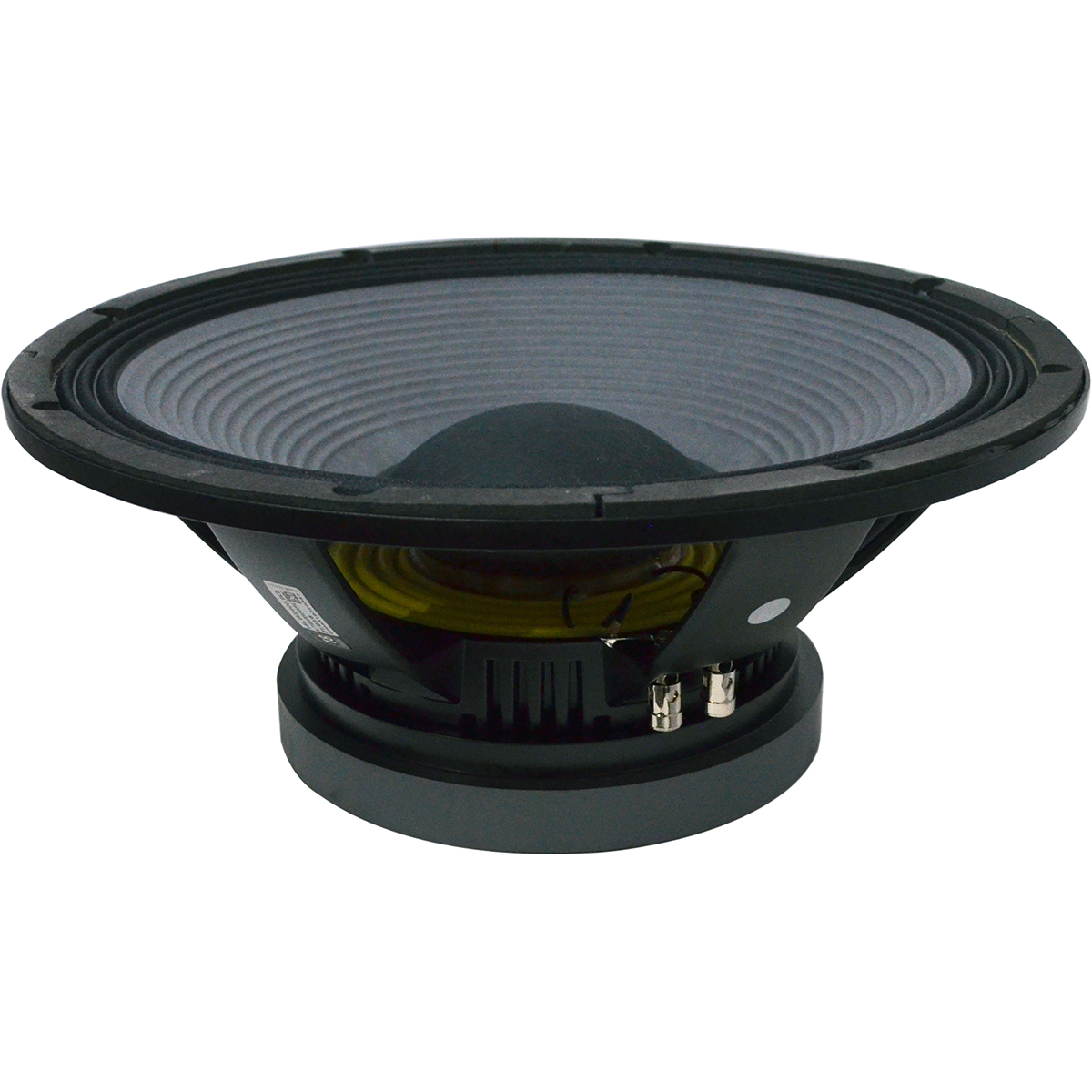 El altavoz 15LW2400 se ha desarrollado como una evolución del transductor de baja frecuencia 15LW1401, estableciendo un nuevo estándar de la industria en los transductores de alto rendimiento de ferrita de 15″ pulgadas. Este altavoz fue diseñado para su uso como componente de bajos graves o subwoofer en una configuración reflex de gabinete compacto (60 – 130 lt), proporciona una reproducción de baja frecuencia limpia, lineal y sin distorsiones a niveles de potencia muy altos. Las altas capacidades de excursión del Double Silicon Spider (DSS) permiten que el altavoz 15LW2400 logre altos niveles de desplazamiento lineal y mantenga el control total de la masa en movimiento. El cono acanalado de lados rectos reforzado con fibra de vidrio asegura una respuesta suave con alta amortiguación interna. La bobina móvil de cobre de 100 mm, emplea la tecnología de bobina Interleaved Sandwich (ISV) en la que un embobinador de fibra de vidrio de alta resistencia transporta bobinas en las superficies interior y exterior para lograr una bobina de masa equilibrada. El peso de los devanados se distribuye uniformemente, lo que proporciona una unidad motriz uniforme. La baja distorsión y la calidad del sonido del altavoz 15LW2400 se han mejorado aún más gracias al doble anillo demodulador (DDR) diseñado para reducir drásticamente la intermodulación y la distorsión armónica, al tiempo que mejoran la respuesta transitoria. Se ha logrado una excelente disipación del calor mediante la incorporación de canales de aire entre la canasta y la placa superior del imán. Se proporciona ventilación adicional utilizando respiraderos de aire en la placa posterior que dirigen el aire hacia la parte inferior del espacio de la bobina móvil. Para aumentar aún más el manejo de la potencia y reducir la compresión de la potencia, el altavoz 15LW2400 utiliza la misma tecnología de ventilación de bobina móvil desarrollada para nuestra serie de transductores 9000 de neodimio. Se coloca un difractor de aire de baja densidad en la placa posterior que actúa como un sistema de enfriamiento, lo que aumenta la capacidad de manejo de potencia y reduce la figura de compresión de potencia. Como resultado final, el transductor muestra una reducción de 1 dB en el valor de compresión de potencia total si se compara con el altavoz 15LW1401, y un valor de manejo de potencia programa de 2400W. Se ha obtenido un 10% de reducción de peso optimizando la estructura magnética a través de herramientas avanzadas de simulación FEA CAD. La capacidad del 15LW2400 para desempeñarse adecuadamente en condiciones climáticas adversas se ha logrado utilizando un exclusivo tratamiento con celulosa que otorga propiedades repelentes al agua a ambos lados del cono. Además, se aplica un revestimiento epóxico a las placas de metal para resistir los efectos corrosivos de las sales y la oxidación.