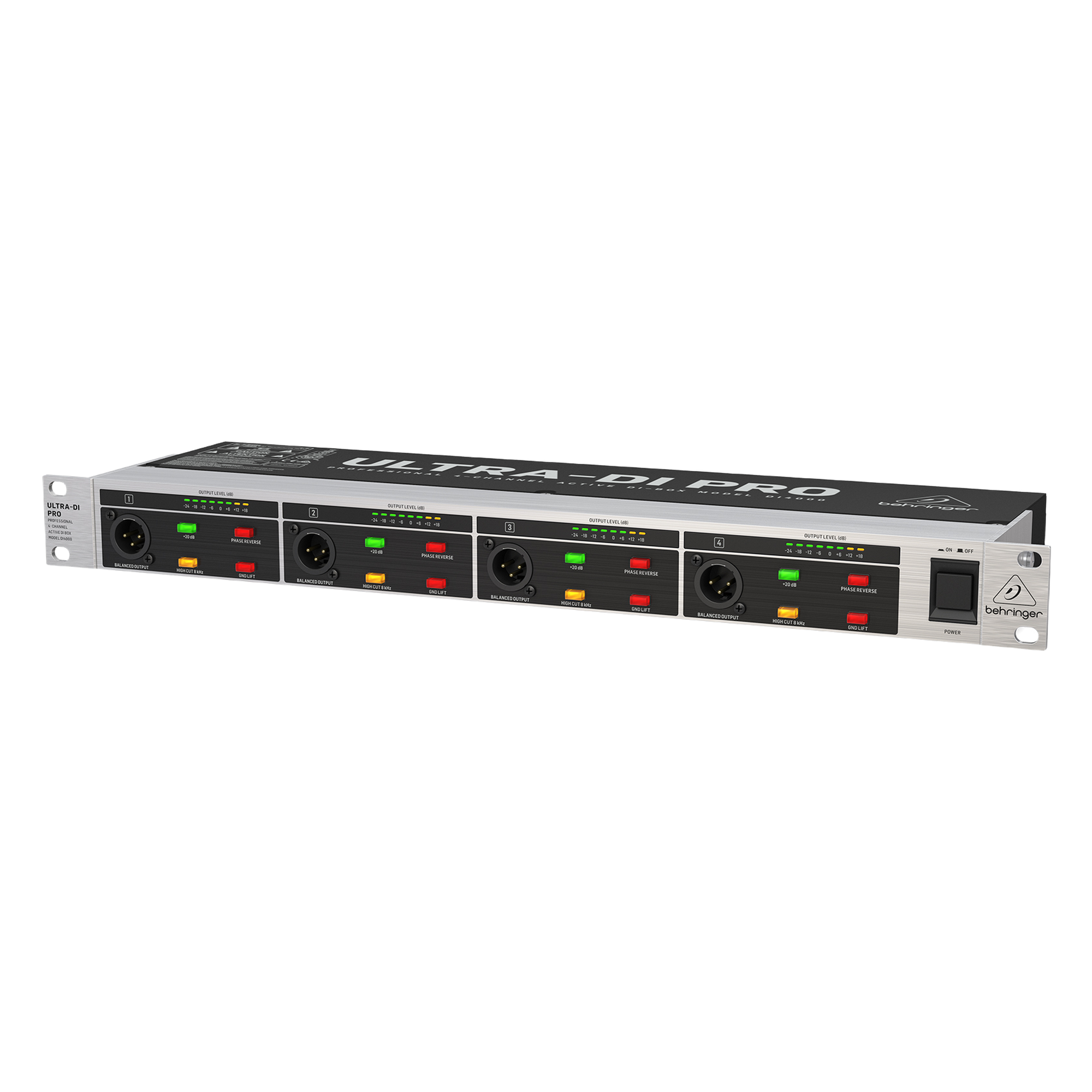 Caja de inyección directa activa profesional y multipropósito de 4 canales para aplicaciones de estudio y escenario, proporciona impedancia y adaptación de señales para la conexión directa de instrumentos a mezcladoras y amplificadores, respuesta de frecuencia ultra plana gracias a los reconocidos transformadores Behringer OT-1, permite la conexión directa a salidas de altavoz con hasta 3000 watts, switch de ganancia de +20 dB para preamplificación de señales de bajo nivel, atenuación de entrada conmutable que permite niveles de entrada de hasta +40 dB, switch de inversión de fase que permite corregir instantáneamente los problemas de fase, filtro de corte alto conmutable (48 kHz) para aplicaciones de guitarra, switch Ground Lift que elimina los típicos problemas de loop de tierra, preciso medidor LED de nivel de 8 segmentos para un rendimiento óptimo, conectores TRS de 1/4″ y XLR bañados en oro, switches iluminados que permiten un funcionamiento perfecto para entornos oscuros de escenario, fuente de alimentación conmutada interna (100-240V~) para audio sin ruido y bajo consumo de energía, dimensiones: 44 x 483 x 136 mm, peso: 2.1 kg.
