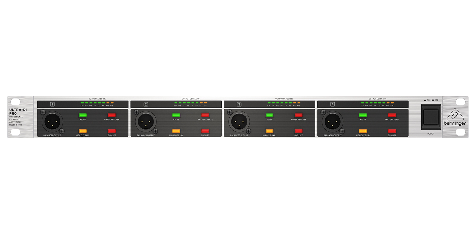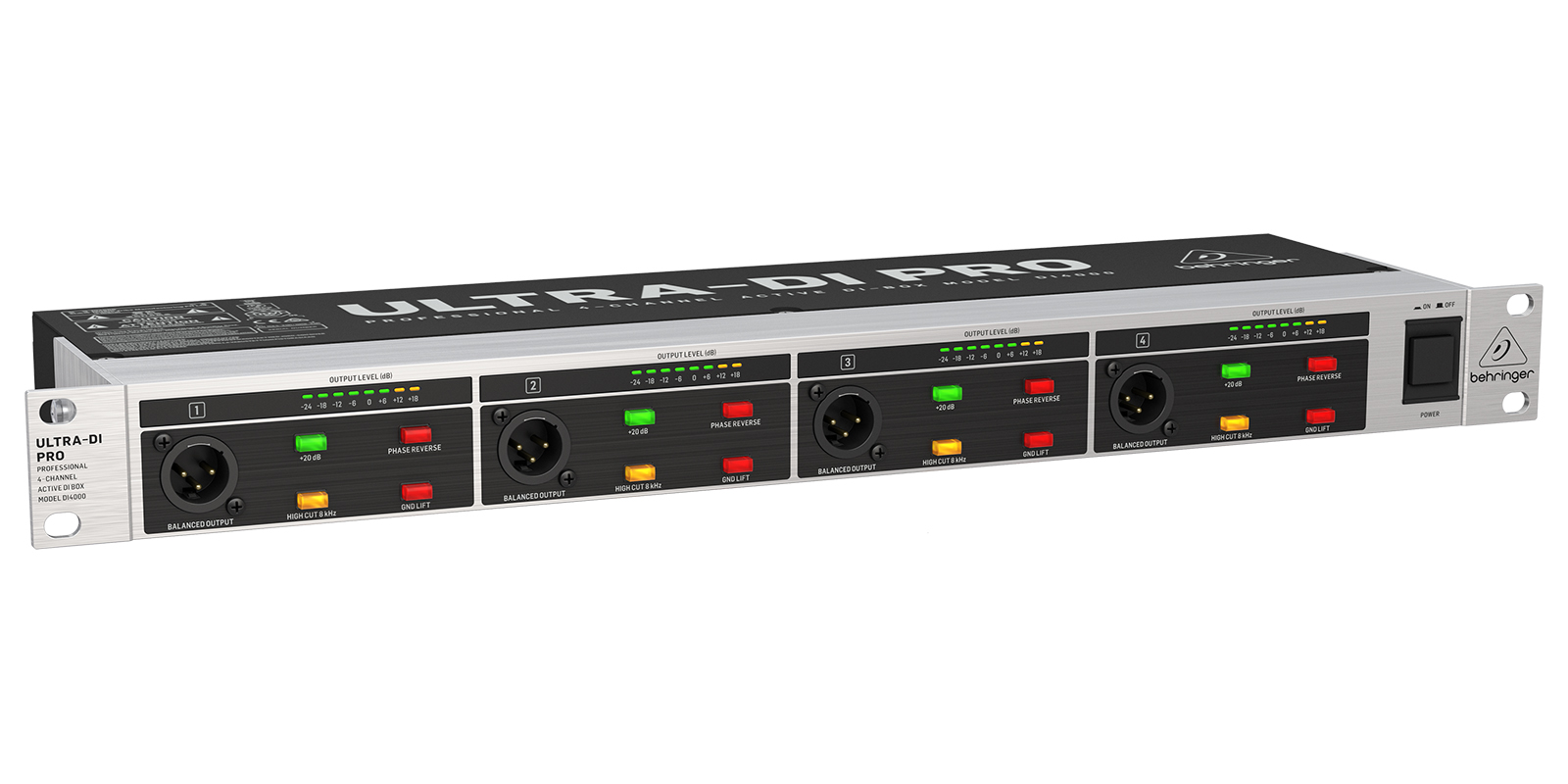 El ULTRA-DI PRO DI4000 te ofrece 4 canales DI de primera clase en un sólo espacio de rack. Cada canal está equipado con dos entradas (XLR y TRS 1/4″), una salida XLR balanceada y una salida Link de 1/4″ para conectar a tu amplificador o consola de monitores. Además, el DI4000 está diseñado para adaptarse a prácticamente cualquier señal de entrada, hasta 40 dB de atenuación de entrada conmutable y hasta 20 dB de ganancia, mientras que nuestros aclamados transformadores de salida OT-1 garantizan una salida impecable y potente. Las cajas de inyección directa (DI) permiten conectar guitarras, bajos y teclados (así como otros dispositivos de nivel de línea) a mezcladoras y grabadoras de audio. El DI4000 lleva la caja DI al siguiente nivel con un filtro especial de corte alto de 8 kHz por canal, para aplicaciones de guitarra, junto con un switch de inversión de fase para una alineación óptima de la señal. Además, nuestra caja activa DI4000 cuenta con entradas “buffered” que respetan la señal de la fuente mucho mejor que las cajas DI pasivas: emiten señales de impedancia extremadamente baja (600 ohms) equilibradas de manera óptima que son mucho menos susceptibles al ruido y la interferencia de RF (RFI). Cuando se trata de eso, todas las cajas hacen lo mismo, ¿verdad? Sí, pero DI4000 hace mucho más que “entrada de bajo, salida de señal de nivel de micrófono”. Realmente es un conjunto de herramientas de señal de entrada muy versátil. Estas son solo dos ventajas que tiene el DI4000 sobre las cajas DI estándar. ¿Quizás te gustaría conectar la salida de altavoz de tu amplificador de guitarra a tu mezcladora? No hay problema, el DI4000 cuenta con dos switches de atenuación de -20 dB por canal, lo que permite conectarse a salidas de altavoces con una potencia nominal de hasta 3000 watts y convertirlas en salidas XLR balanceadas. ¿Señal entrante débil? El DI4000 tiene un switch de +20 dB que realmente es útil para impulsar señales de entrada de bajo nivel a señales balanceadas con potencia real e impacto sólido como una roca. ¿Preocupado por los voltajes fluctuantes en el lugar? El DI4000 está equipado con una fuente de alimentación conmutada interna que varía de 100 a 240V y se adapta automáticamente a los voltajes de la red dondequiera que vayas. Por supuesto, el DI4000 proporciona una salida Link para una fácil conexión a otros equipos, como tus amplificadores en el escenario o consolas de monitor. El rendimiento servo balanceado garantiza una respuesta de frecuencia ultra plana y los conectores de salida XLR chapados en oro brindan un funcionamiento confiable y con poco ruido. Los switches ground-lift por canal eliminan los problemas de zumbido del ground-loop. El DI4000 hace todo lo que puede hacer un DI independiente y mucho más, multiplicado por cuatro. El Ultra-DI PRO DI4000 de 4 canales ofrece una calidad de sonido excepcional a un precio extremadamente asequible.