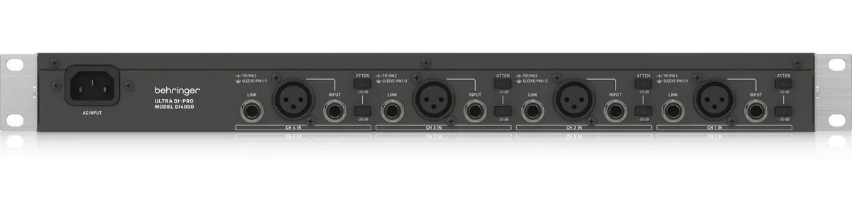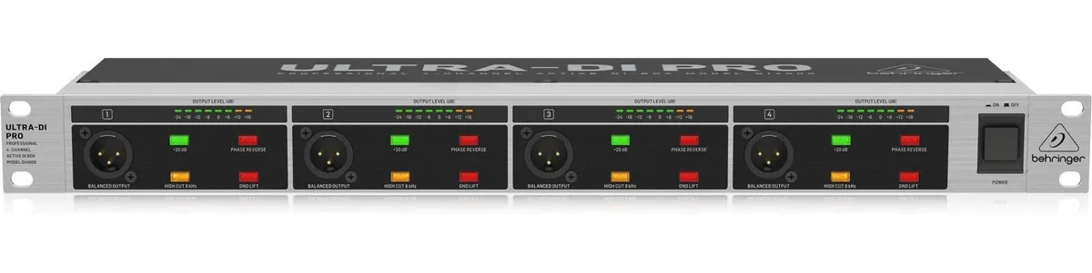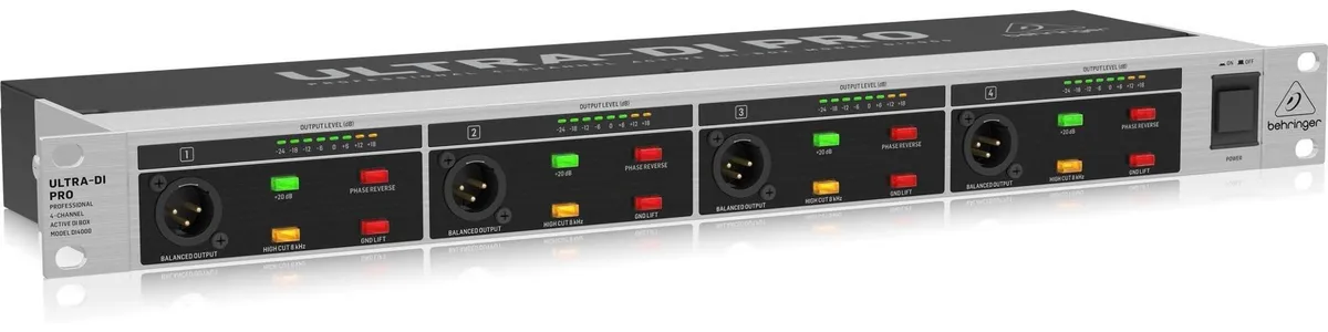 La Caja Directa Behringer Mod. DI4000 (V2) es una solución de alto rendimiento para el manejo de múltiples señales en el escenario o el estudio. Este dispositivo activo de 4 canales permite convertir señales de instrumentos desbalanceadas en salidas balanceadas profesionales, eliminando eficazmente los zumbidos y bucles de tierra (ground lift). El modelo DI4000 destaca por sus transformadores de salida OT-1 de Behringer que garantizan una respuesta de frecuencia ultra plana. Además, cuenta con interruptores de atenuación de hasta -40 dB, permitiendo la conexión directa a salidas de amplificadores de hasta 3,000 Watts, manteniendo siempre la integridad de la señal.