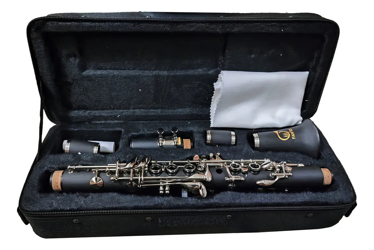 El Clarinete Material Baquelita Llaves Plata Tono Eb de Fanpro es una excelente opción para músicos que requieren la versatilidad de un clarinete píccolo (Mib). A diferencia de los clarinetes de madera que requieren cuidados extremos, la baquelita utilizada en este modelo ofrece una resistencia superior a los cambios de temperatura y humedad, lo que previene grietas y garantiza una estabilidad tonal constante, ideal para bandas de marcha o presentaciones al aire libre.