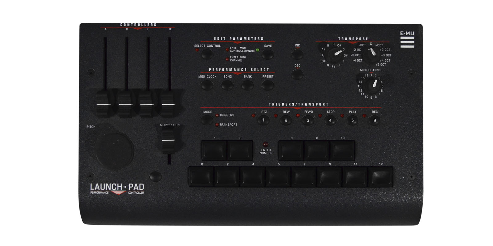 Si tu teclado controlador no tiene los suficientes interruptores, deslizadores y pedales que requieres, tienes 3 opciones: Comprar un nuevo teclado, diseñar tu propio add-on o conseguir un Launch Pad. Este Launch Pad se conecta en línea entre el teclado y el resto de tu configuración, esto te ofrece un gran número de opciones para asignar, cuenta con 5 deslizadores, 1 botón, 1 entrada de footswitch y 1 entrada de pedal. Tienes también una rueda pitch, botones de incremento o decremento para switchear canciones, bancos y programas, 13 pads para percusión sensibles a la velocidad y un banco de 6 botones que puede estar en modo de transporte (MMC / secuenciador de control SysEx) o modo de disparo (bloqueo de notas para fondo o ritmos, asignables a cualquier nota y canal).