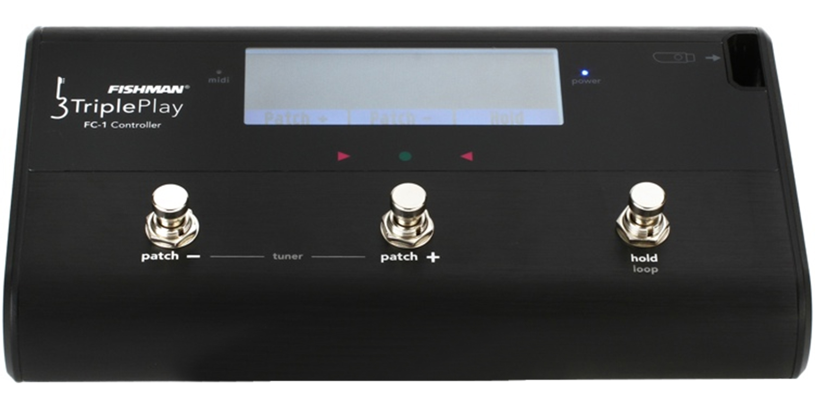 TriplePlay FC-1 es una pedalera multifunción con USB y entrada/salida MIDI. Se le pueden conectar módulos de sonido y sintetizadores para no tener que llevar la computadora al escenario. Cuenta con un display brillante que muestra el nombre y número de patch, más una variedad de indicadores de estado incluyendo actividad MIDI, nivel de batería y la posición del interruptor Guitar/Mix/Synth en el controlador.