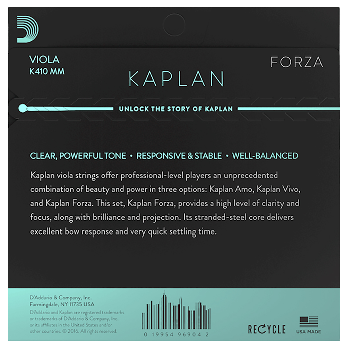 Las cuerdas para viola Kaplan Forza de D’Addario están dirigidas a los músicos profesionales más exigentes y ofrecen la hermosa y rica paleta tonal y la excelente respuesta de arco característica de la línea Kaplan. Las cuerdas Kaplan Forza para viola brindan claridad, calidez y versatilidad en todo el espectro dinámico, lo que permite a los músicos profesionales el control, la expresión y la experiencia de tocar sin las preocupaciones.