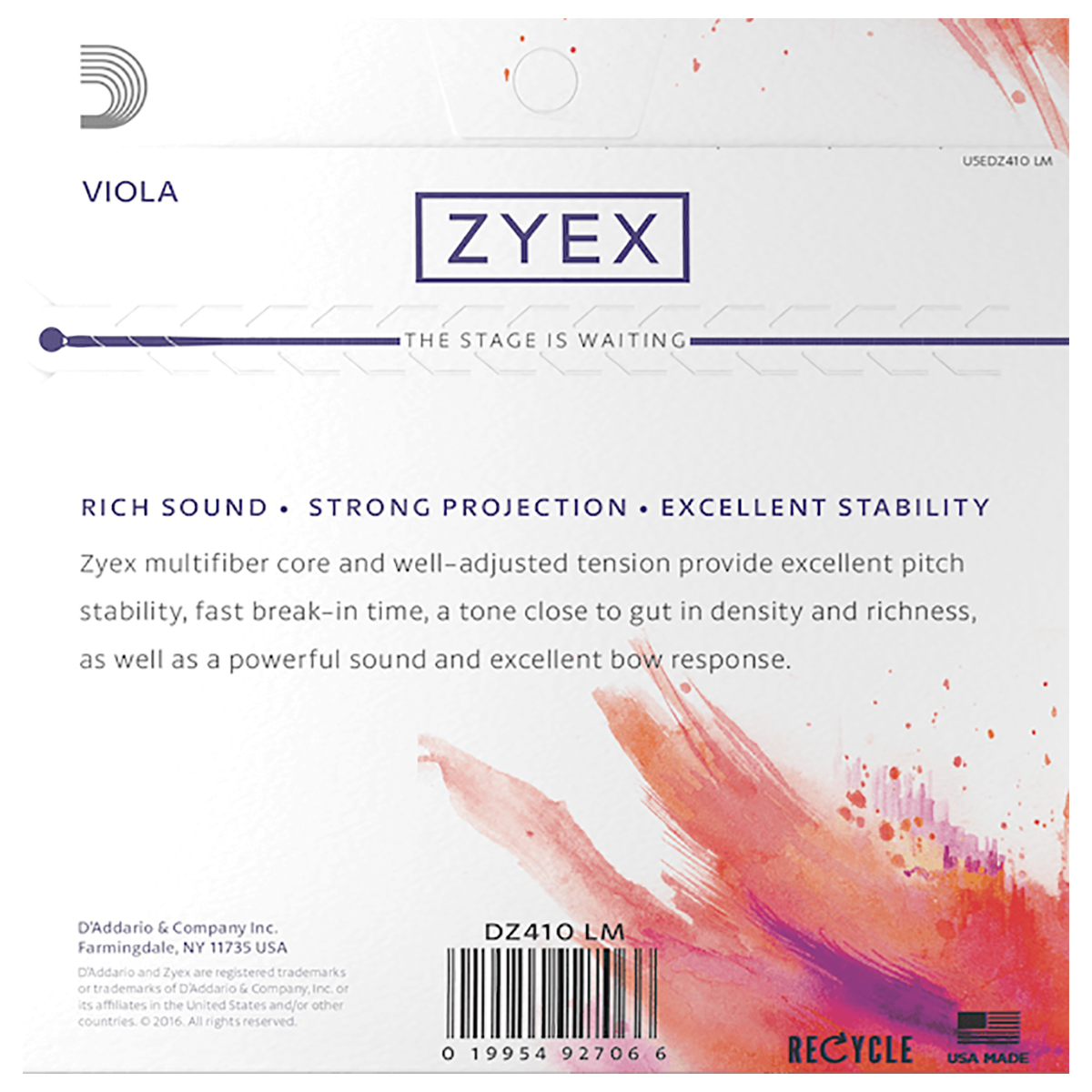 Las cuerdas con núcleo sintético Zyex producen un sonido extremadamente cálido y profundo. Las cuerdas Zyex están fabricadas en un material sintético de última generación que permite que las se mantengan increíblemente estables en condiciones climáticas adversas. En pocas horas, las cuerdas Zylex se asientan en el instrumento con un sonido más cálido que el de la mayoría de las cuerdas con núcleo sintético. Zyex también es una opción excelente para utilizar en instrumentos de sonido nítido.