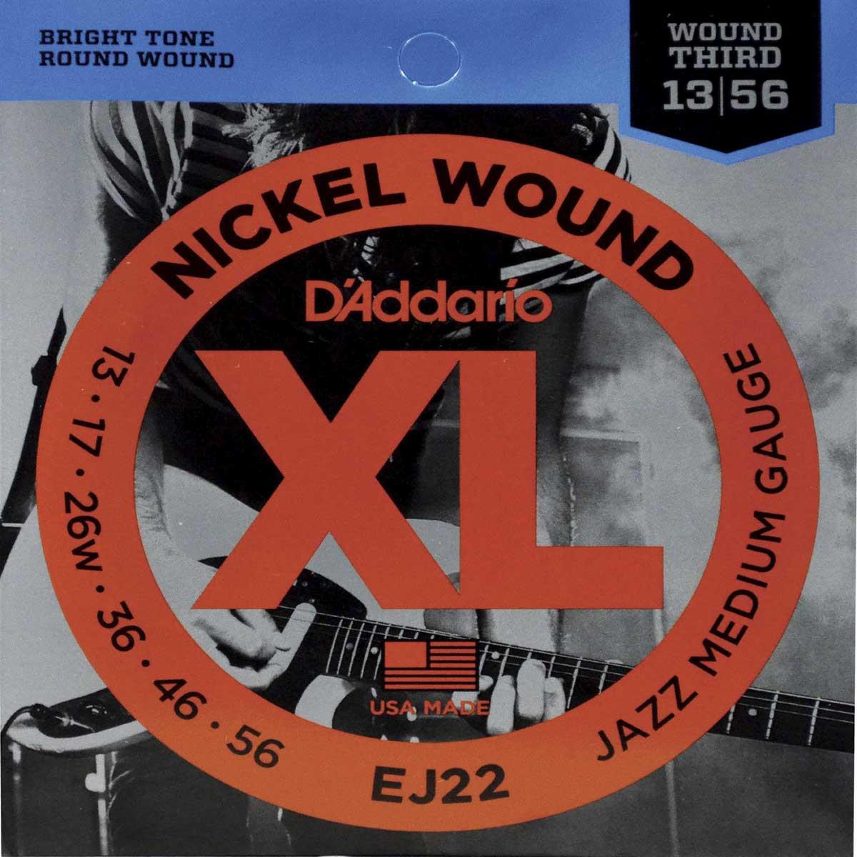 Juego de cuerdas con entorchado en níquel para guitarra eléctrica, tensión media para Jazz, 13-56, tercera cuerda/Sol entorchada, tono denso y sensación tensa, entorchado de precisión con acero niquelado sobre una cuerda de acero de alto carbono, con forma hexagonal y estirada cuidadosamente, tono vívido característico de larga duración, excelente entonación, paquete ecológico y resistente a la corrosión.