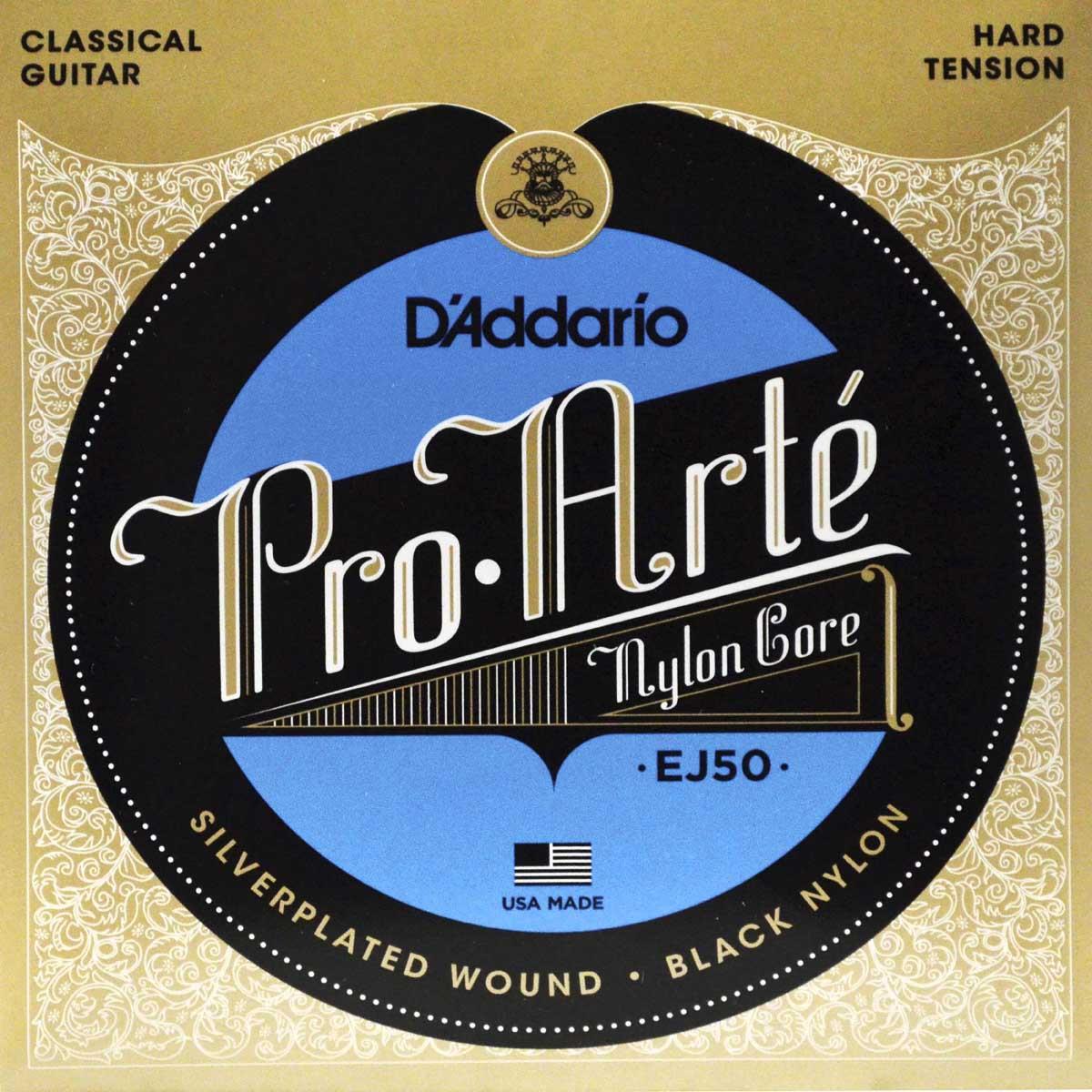 Juego de cuerdas de nylon negro para guitarra clásica, serie Pro-Arte, tensión dura, las cuerdas graves están entorchadas en cobre recubierto en plata sobre un núcleo de nylon de multifilamentos, las cuerdas agudas de nylon negro están clasificadas mediante un sistema láser para proporcionar entonación consistente y precisa, paquete ecológico y resistente a la corrosión para conservar la frescura de las cuerdas.