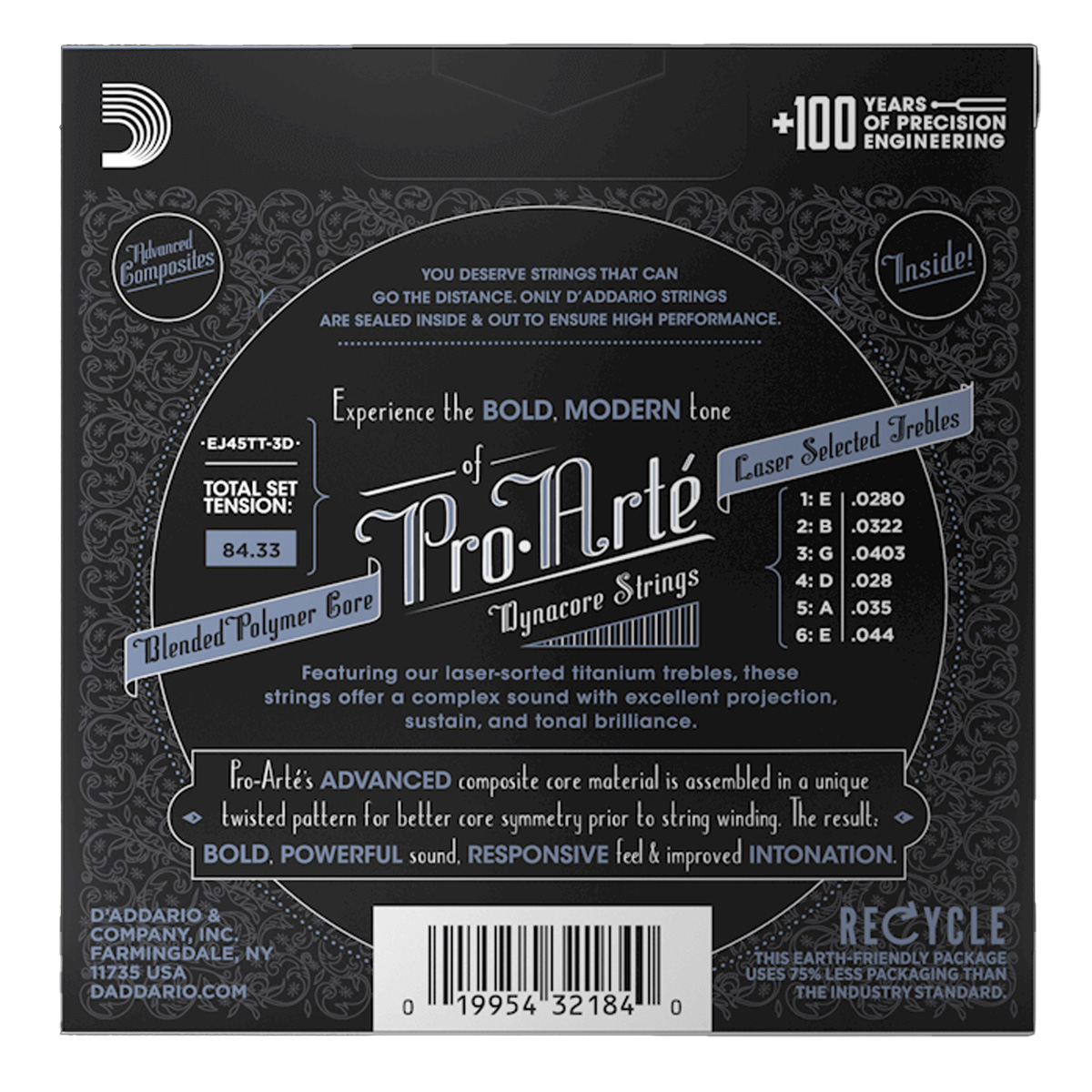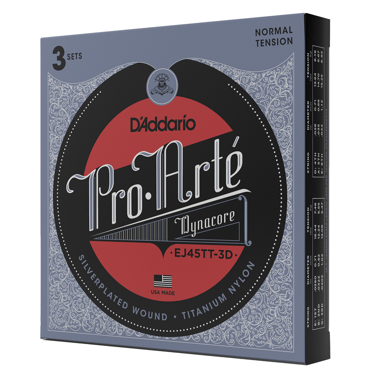 Las cuerdas Dynacore de Pro-Arte conectan la tradición y la base de la fabricación de cuerdas clásicas de D’Addario con los avances contemporáneos en la tecnología de producción. Los bajos Dynacore utilizan una revolucionaria técnica de procesamiento de núcleo de nailon multifilamento retorcido para ofrecer una entonación incomparable, un ataque sensible y una proyección cristalina, manteniendo al mismo tiempo la esencia de Pro-Arte. Junto con nuestros agudos de titanio de precisión, que brindan un equilibrio distintivo y una mayor resonancia en los agudos, las cuerdas Dynacore de Pro-Arte son una combinación excepcional de tradición e innovación, creando un tono verdaderamente único y contemporáneo. Normal Tension es nuestra tensión más vendida, preferida por su equilibrio entre tono rico, sensación cómoda y proyección dinámica.