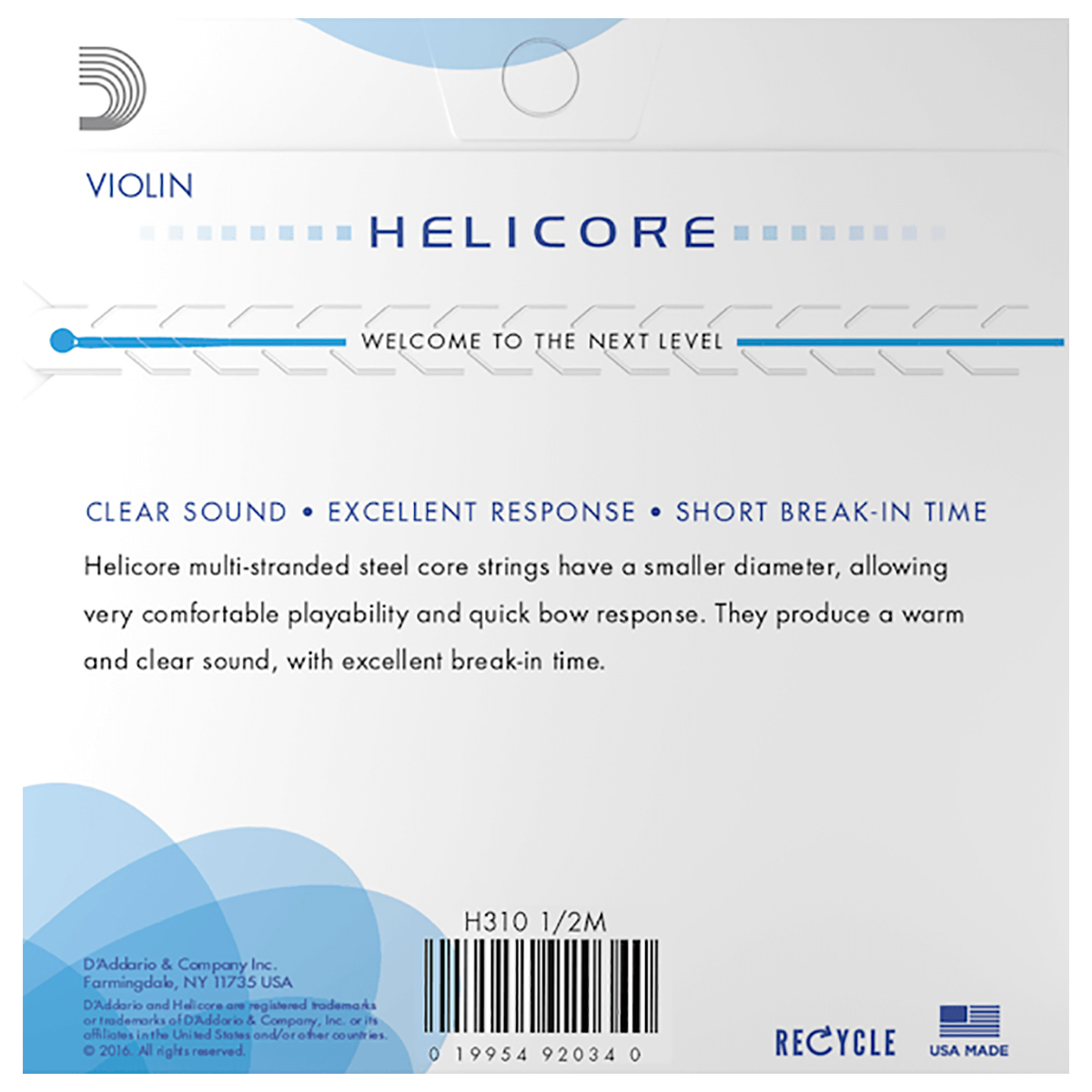 Las cuerdas para violín Helicore están fabricadas con un núcleo de acero multitrenzado, que brinda facilidad de uso óptima mientras produce un tono nítido y cálido. El diámetro más pequeño de la cuerda permite una respuesta rápida del arco. Materiales de máxima calidad combinados con mano de obra especializada producen cuerdas reconocidas por su excelente estabilidad de tono y durabilidad.