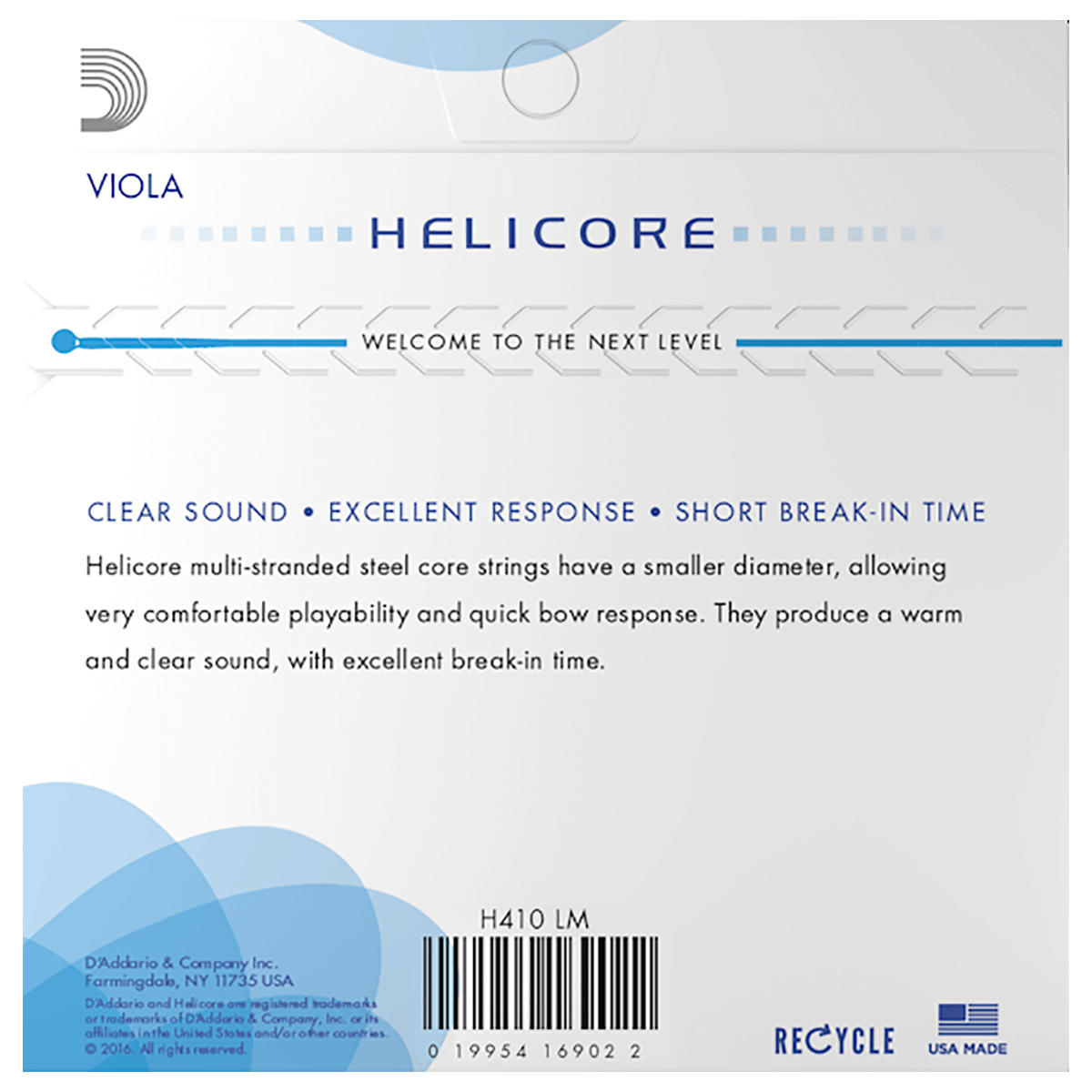Las cuerdas para viola Helicore están fabricadas con un núcleo de acero multitrenzado, que brinda facilidad de uso óptima mientras produce un tono nítido y cálido. El diámetro más pequeño de la cuerda permite una respuesta rápida del arco. Materiales de máxima calidad combinados con mano de obra especializada producen cuerdas reconocidas por su excelente estabilidad de tono y durabilidad.