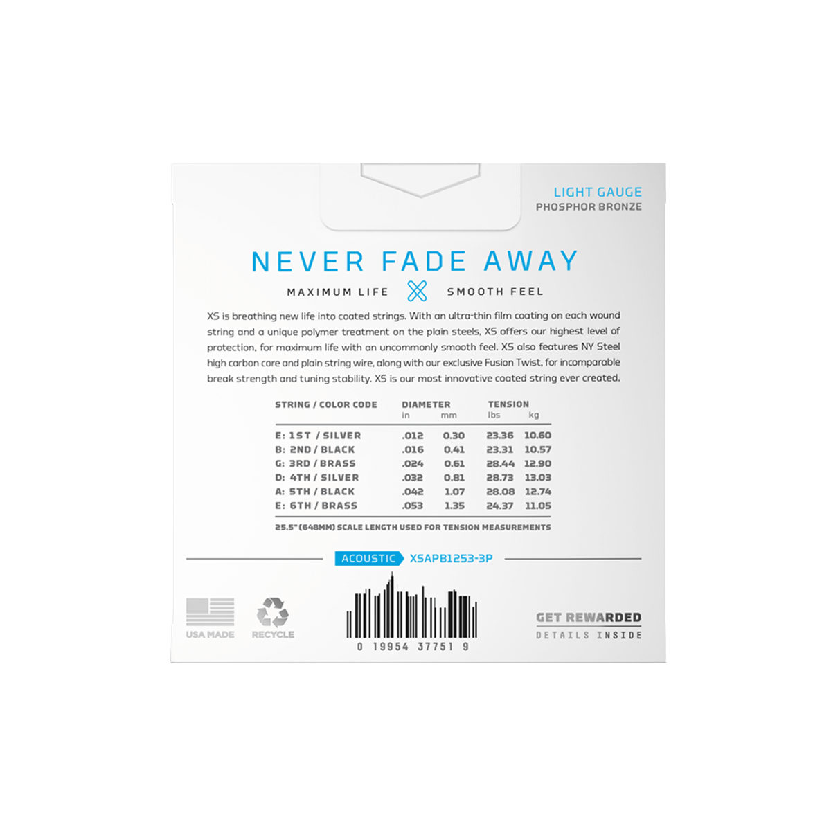 Este es un set de cuerdas para guitarra acústica de 6 cuerdas, recubiertas con la tecnología XS coating de D’Addario. Utiliza un núcleo de NY Steel para mayor fuerza y estabilidad, con entorchado de 80/20 Bronze (aleación de cobre y zinc) para lograr un tono brillante y proyectado. Gracias al recubrimiento avanzado y las técnicas internas como Fusion Twist, estas cuerdas ofrecen una resistencia al rompimiento superior y mantienen la afinación mejor que las cuerdas convencionales.