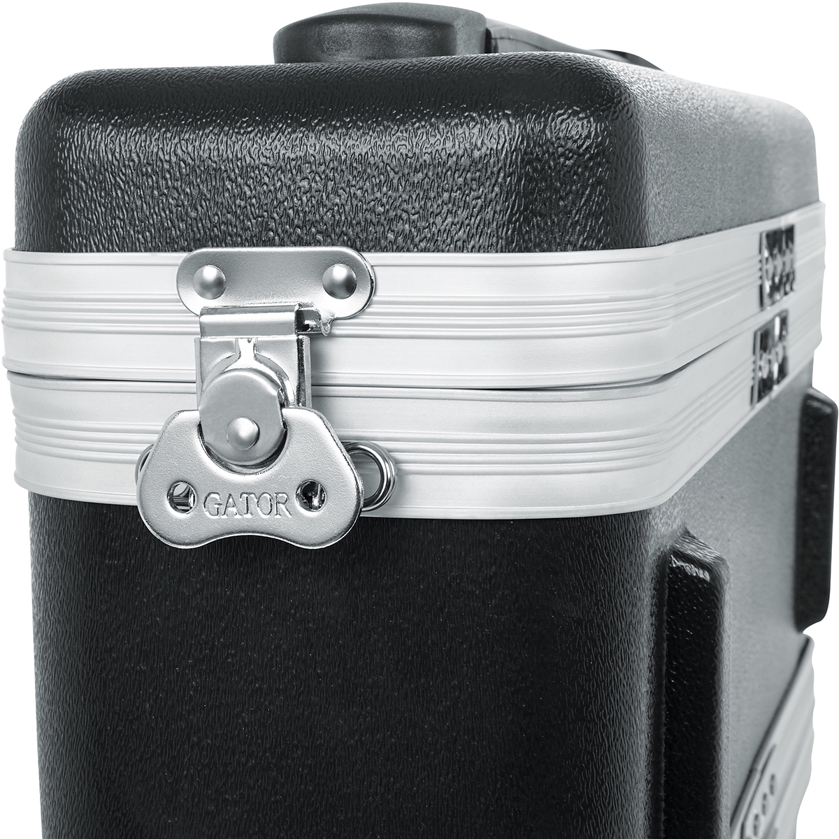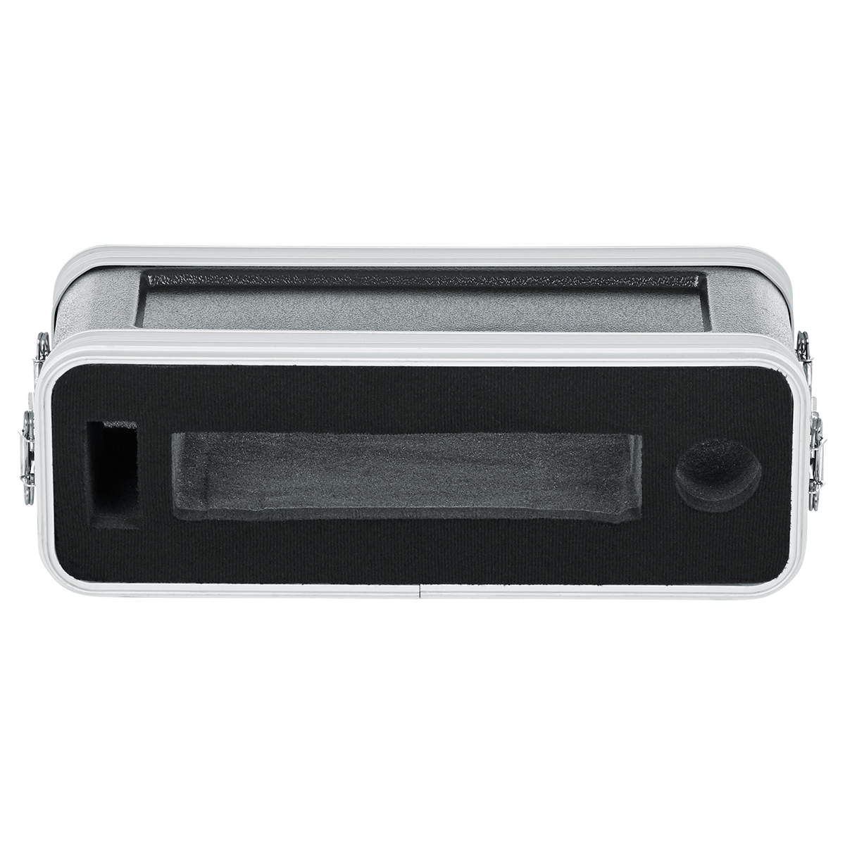 - Espacio para lavalieres, cables y micrófono inalámbrico con transmisor montado.
