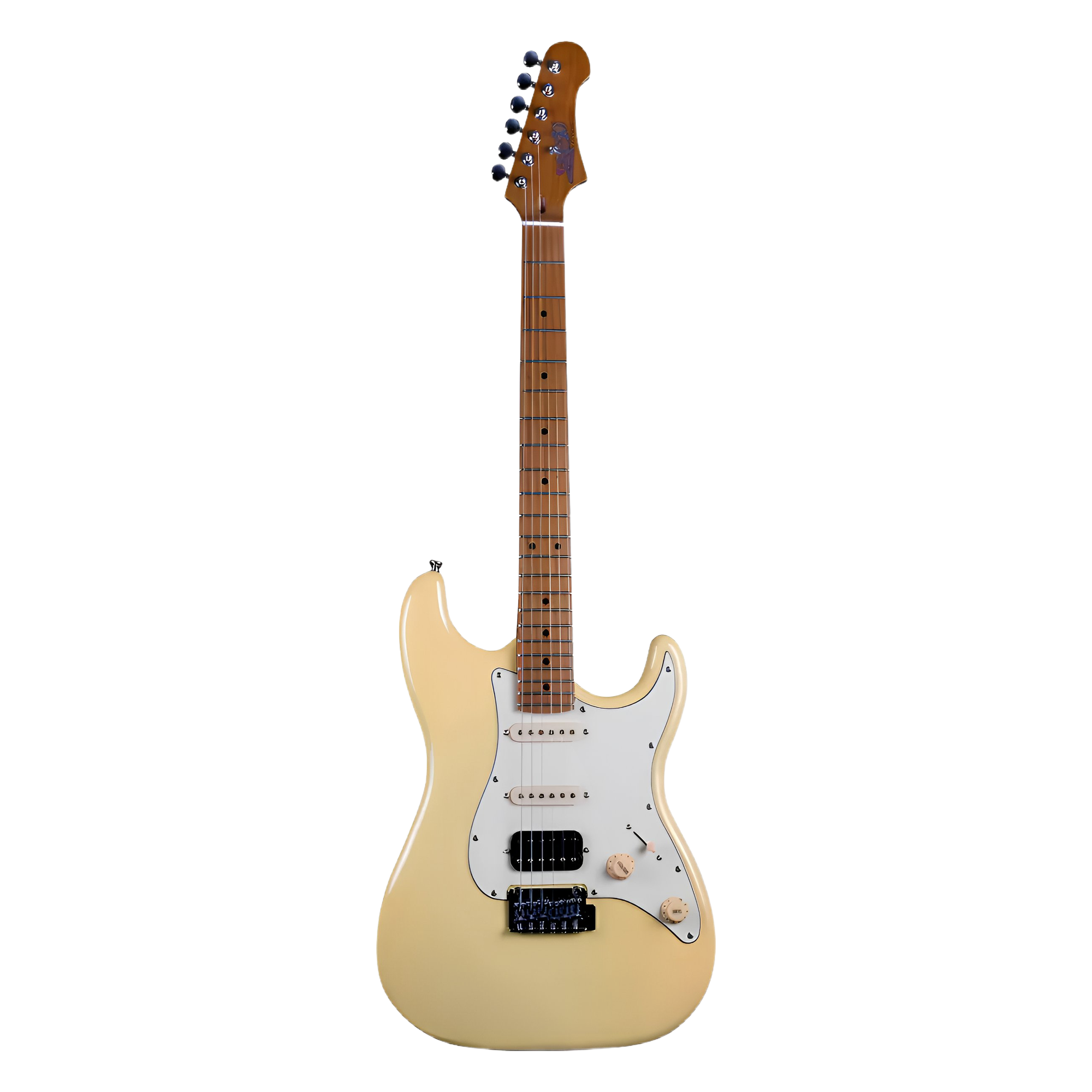 La Guitarra Eléctrica Jet Guitars JS-400 VY (Vintage Yellow) es una guitarra de estilo clásico que destaca por su excelente relación calidad-precio y sus características premium. Cuenta con un cuerpo de Caoba (Mahogany) mástil de Arce Tostado (Roasted Maple) y una configuración versátil de pastillas HSS (Humbucker-Single-Single), ofreciendo tonos ricos y la velocidad de un mástil moderno bajo un atractivo acabado Amarillo Vintage