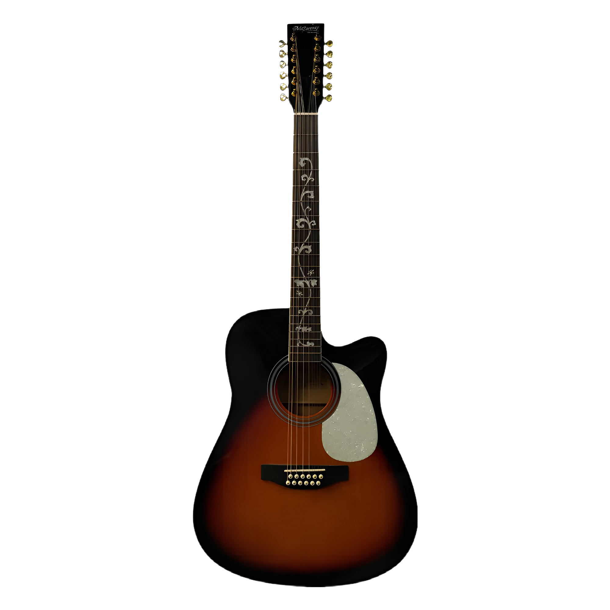 Diseñada con un cuerpo estilo Texana (Dreadnought), esta guitarra de 12 cuerdas asegura un volumen acústico poderoso y una riqueza armónica inigualable. El sonido es naturalmente amplio y resonante, creando ese efecto de “chorus” que enriquece cualquier acompañamiento, desde el folk hasta el rock. Su construcción está optimizada para soportar la tensión de las 12 cuerdas sin sacrificar la comodidad ni la estabilidad de la afinación.