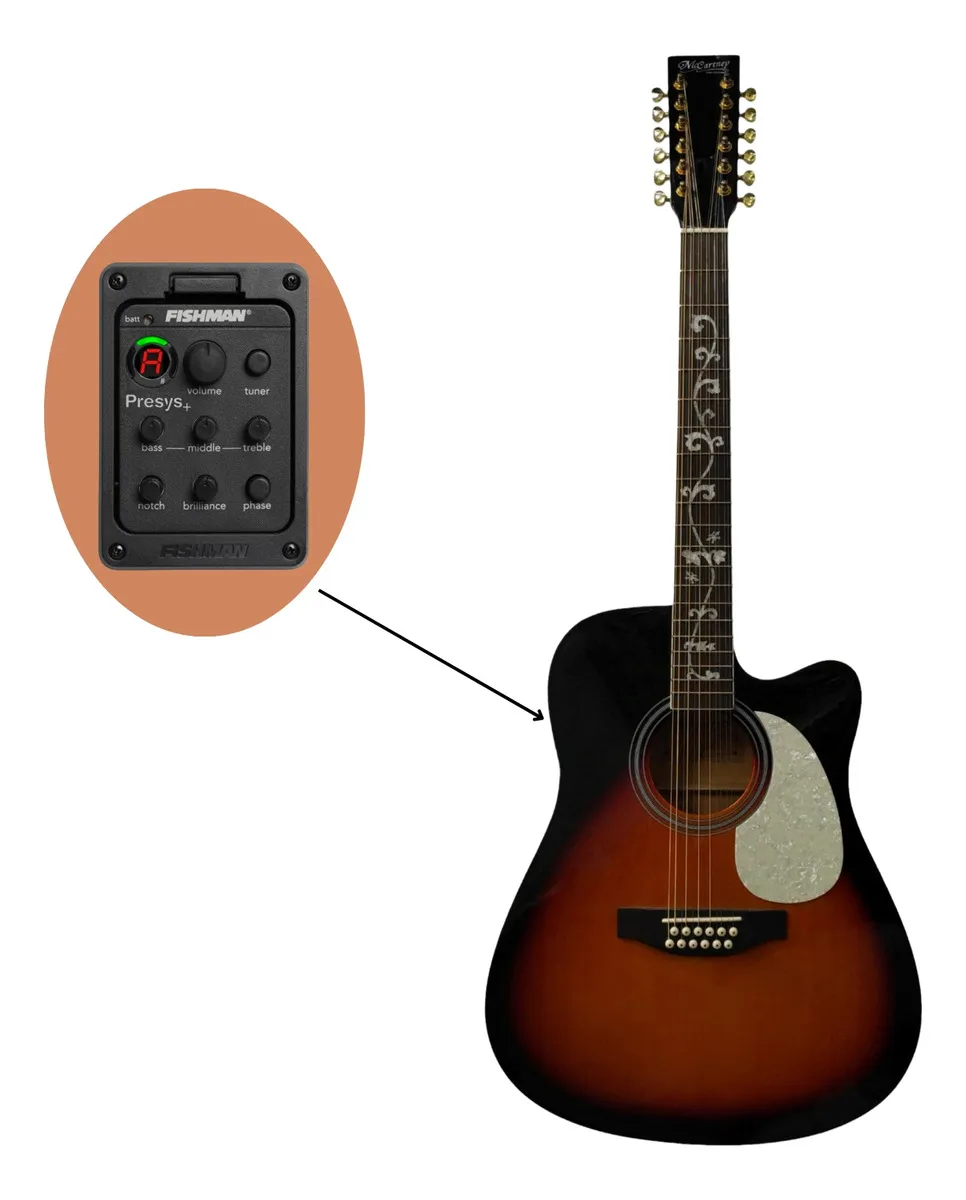 Guitarra Electroacústica 12 Cuerdas McCartney Docerola BFG-4117C-12FM-EQ-3TS Pastilla 5 Bandas LC-5 Sombreado Fishman Burst