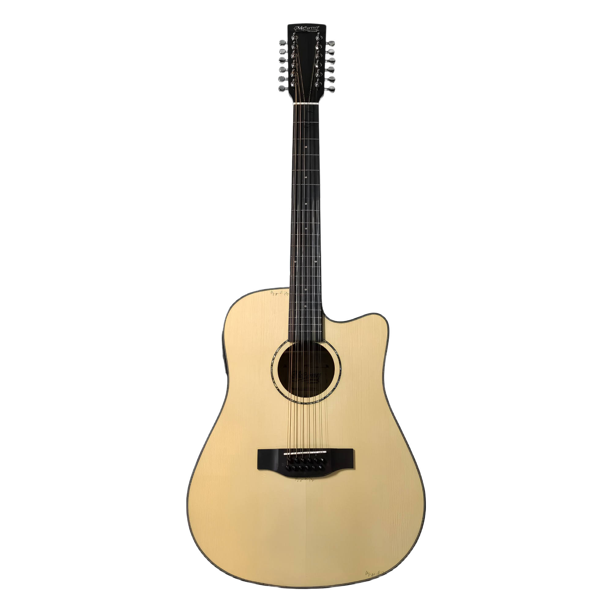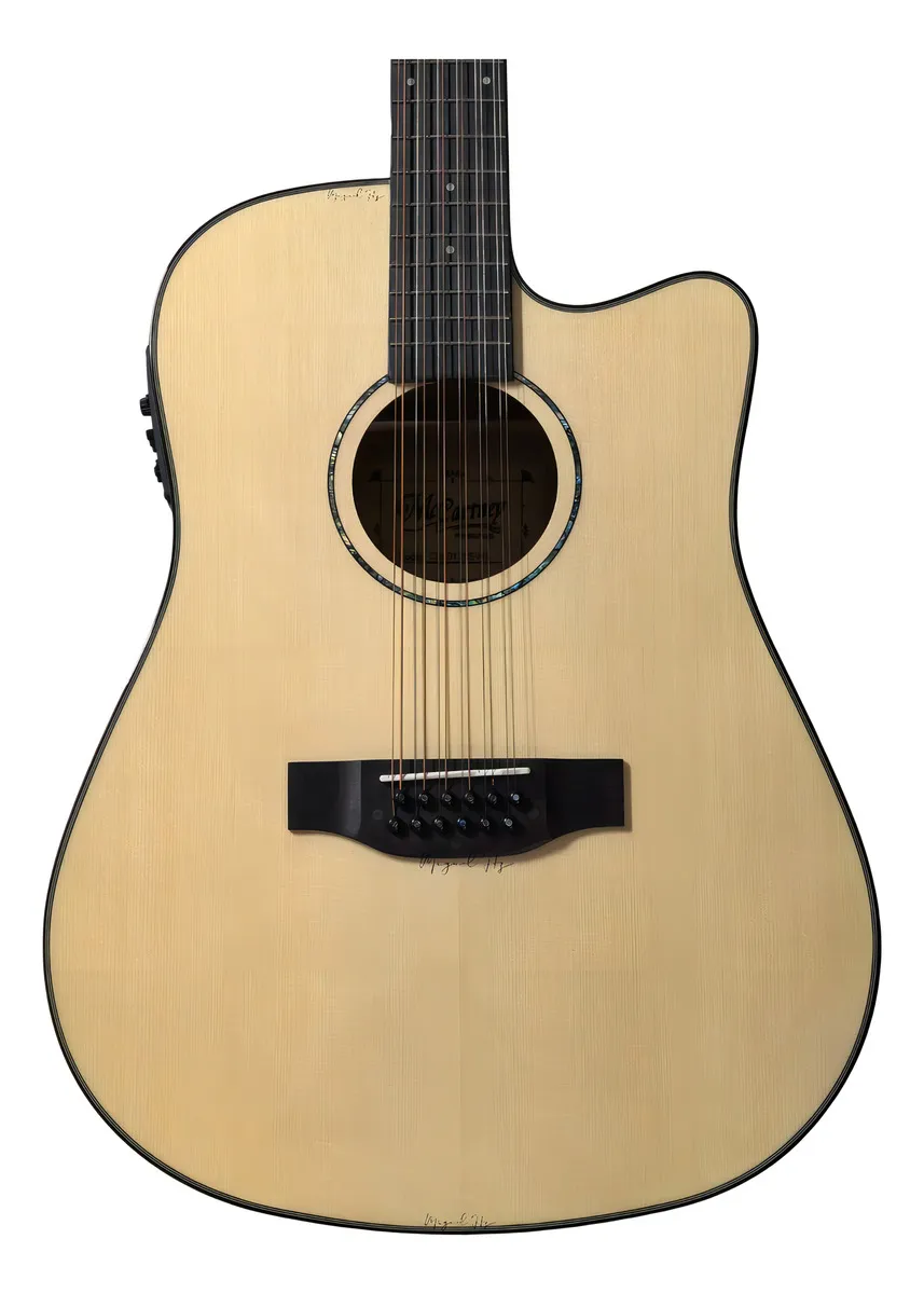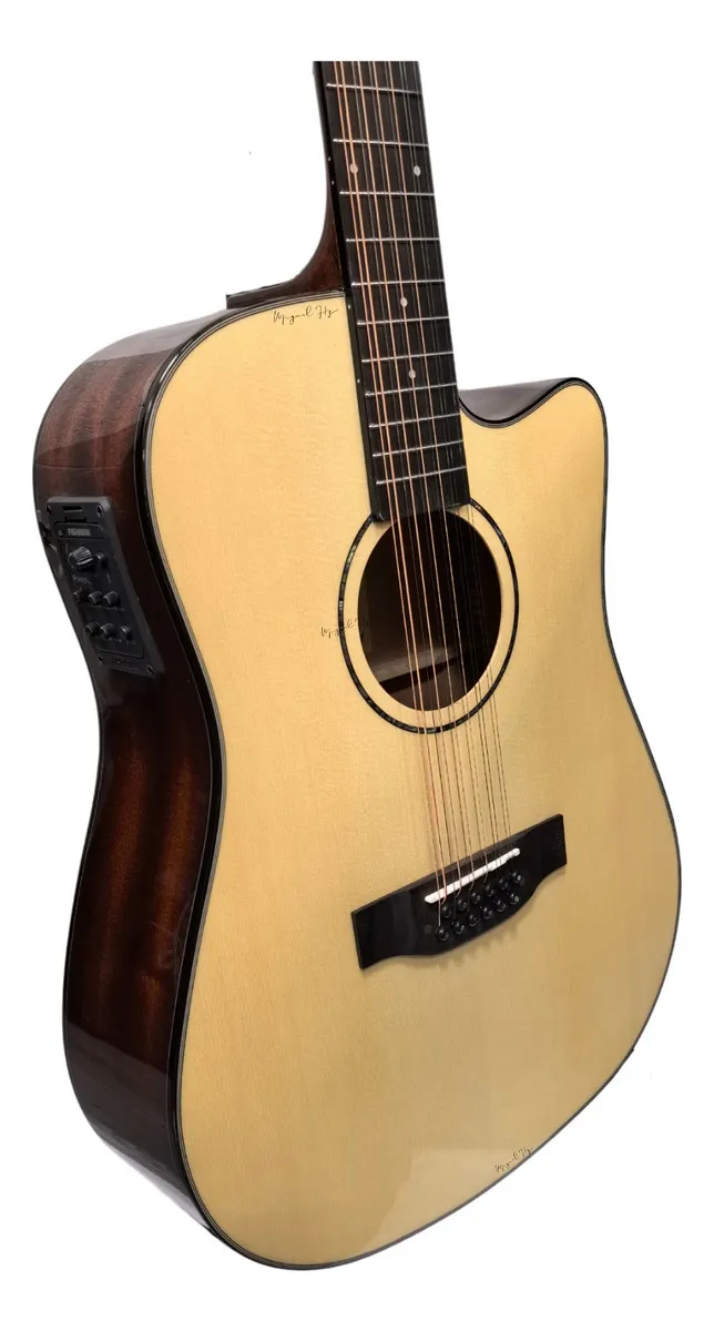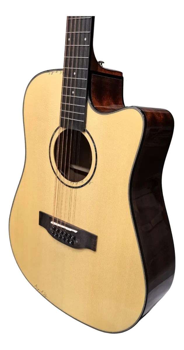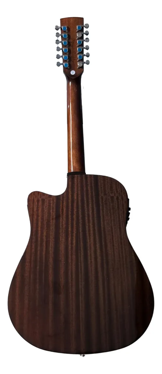 Gracias a su construcción robusta de cuerpo tipo Docerola (Dreadnought), esta guitarra de 12 cuerdas genera un volumen excepcional y un sostenido impresionante. El timbre es naturalmente rico, con un efecto de “chorus” que añade profundidad y textura armónica a la música, haciéndola perfecta para acompañamiento, fingerstyle y grabaciones profesionales.