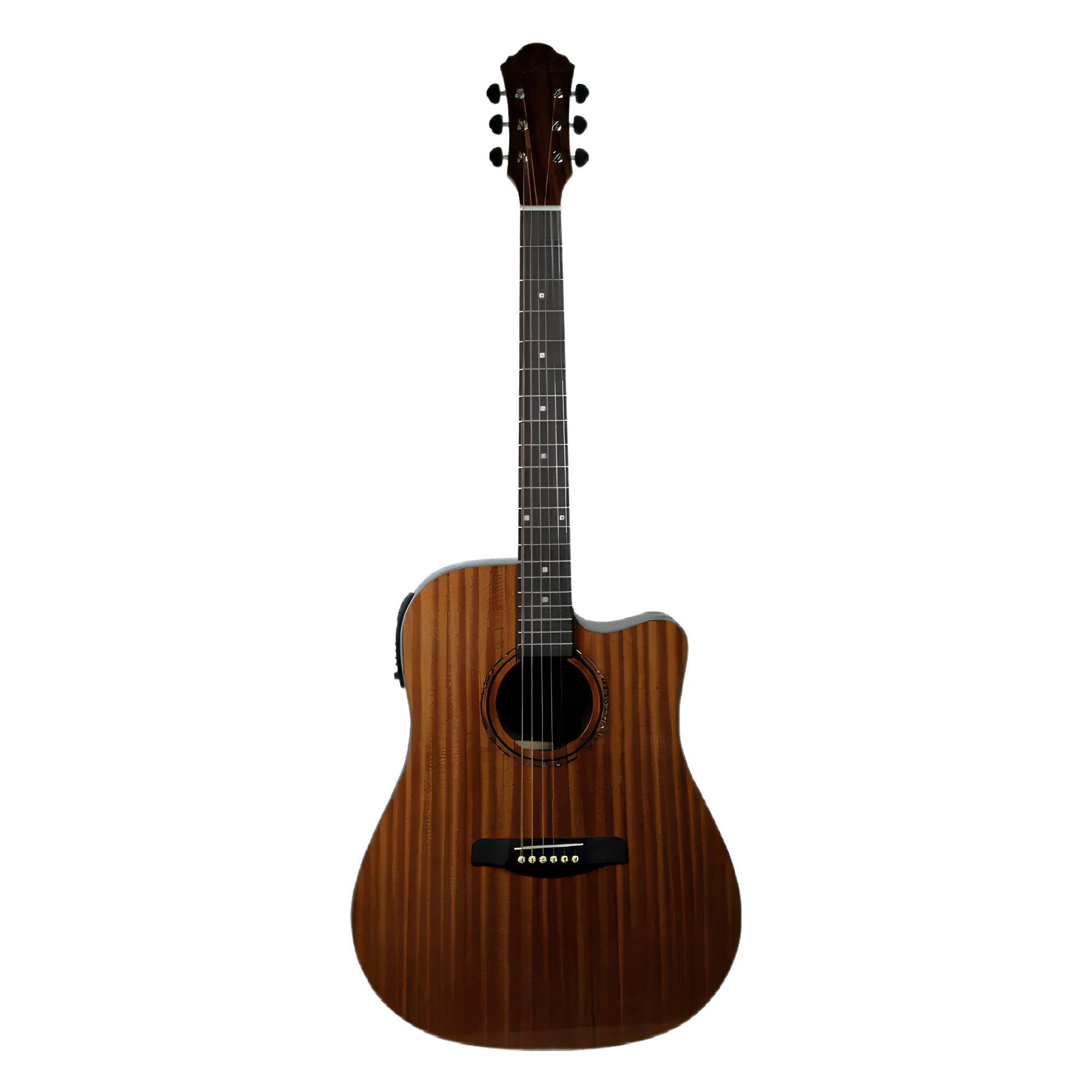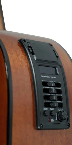 Guitarra electroacústica tipo texana, tapa de caoba, aros, fondo y brazo de caoba, puente de sonokelin y diapasón de rosewood, resaque, mica, 20 trastes, maquinaria de acero die-cast, preamp activo KLT-34 con afinador digital, ecualizador de 4 bandas, volumen y fase, equipada con cuerdas D’Addario. Dimensiones del producto: 109 x 50 x 14 cm. Peso: 3.22 Kg.
