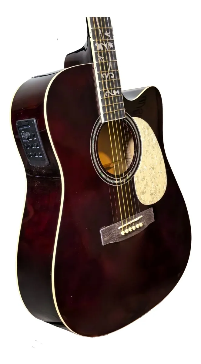 Visualmente, el acabado Wine Red (Rojo Vino) es profundo y elegante, capturando la atención de la audiencia. Este estilo se complementa con un diseño especial de incrustaciones (inlays) en el diapasón que le otorga un carácter distintivo y premium, diferenciándola de los modelos estándar..