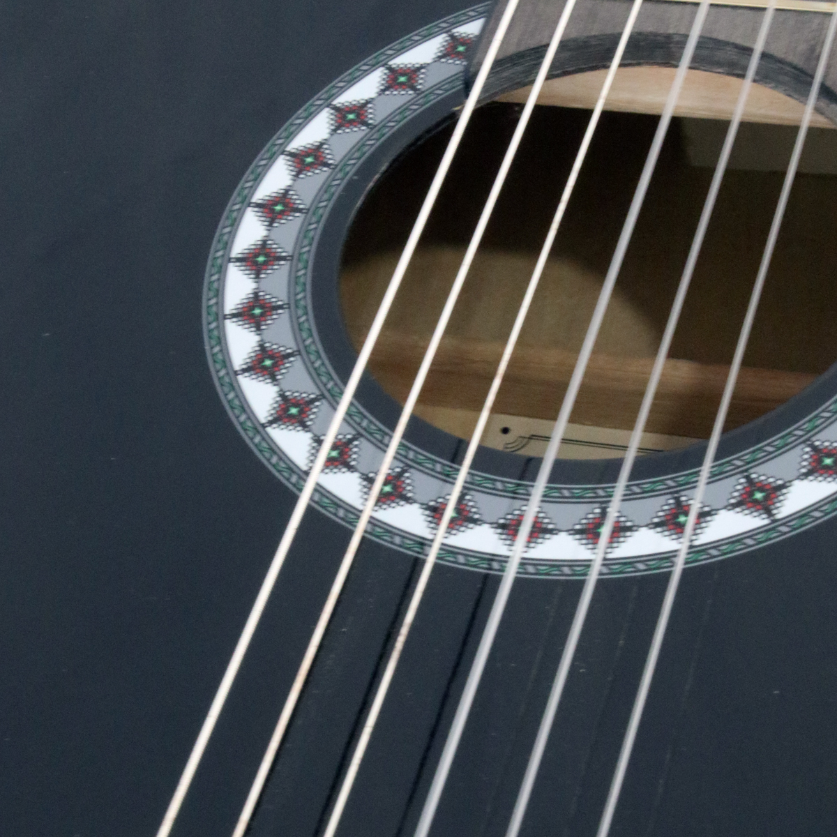 Guitarra clásica Concert Guitars BasicPlus, escala 4/4” (650 mm), cuerpo de tilo, unión de ABS, diapasón y puente de madera de pakka, trastes de níquel plata, maquinaria cromada, terminado al alto brillo, cejuela de 52 mm de ancho.
