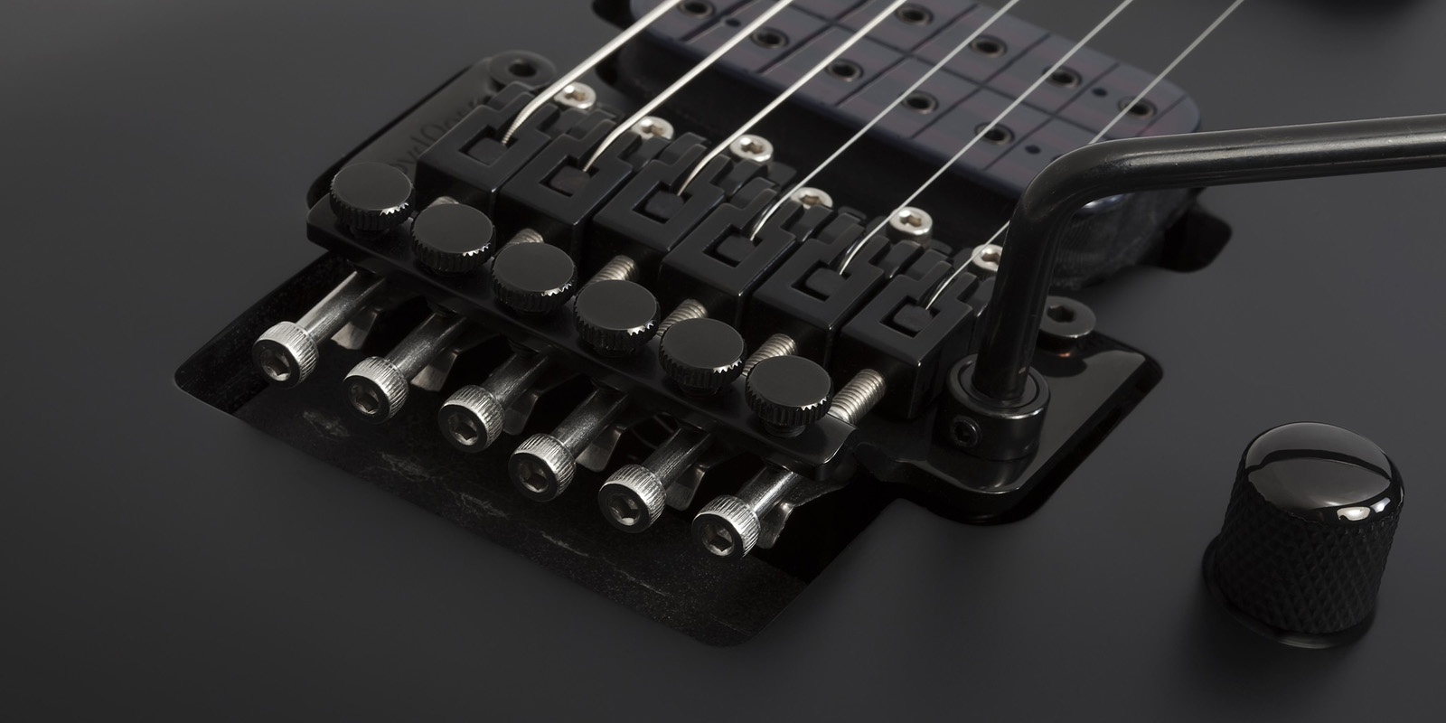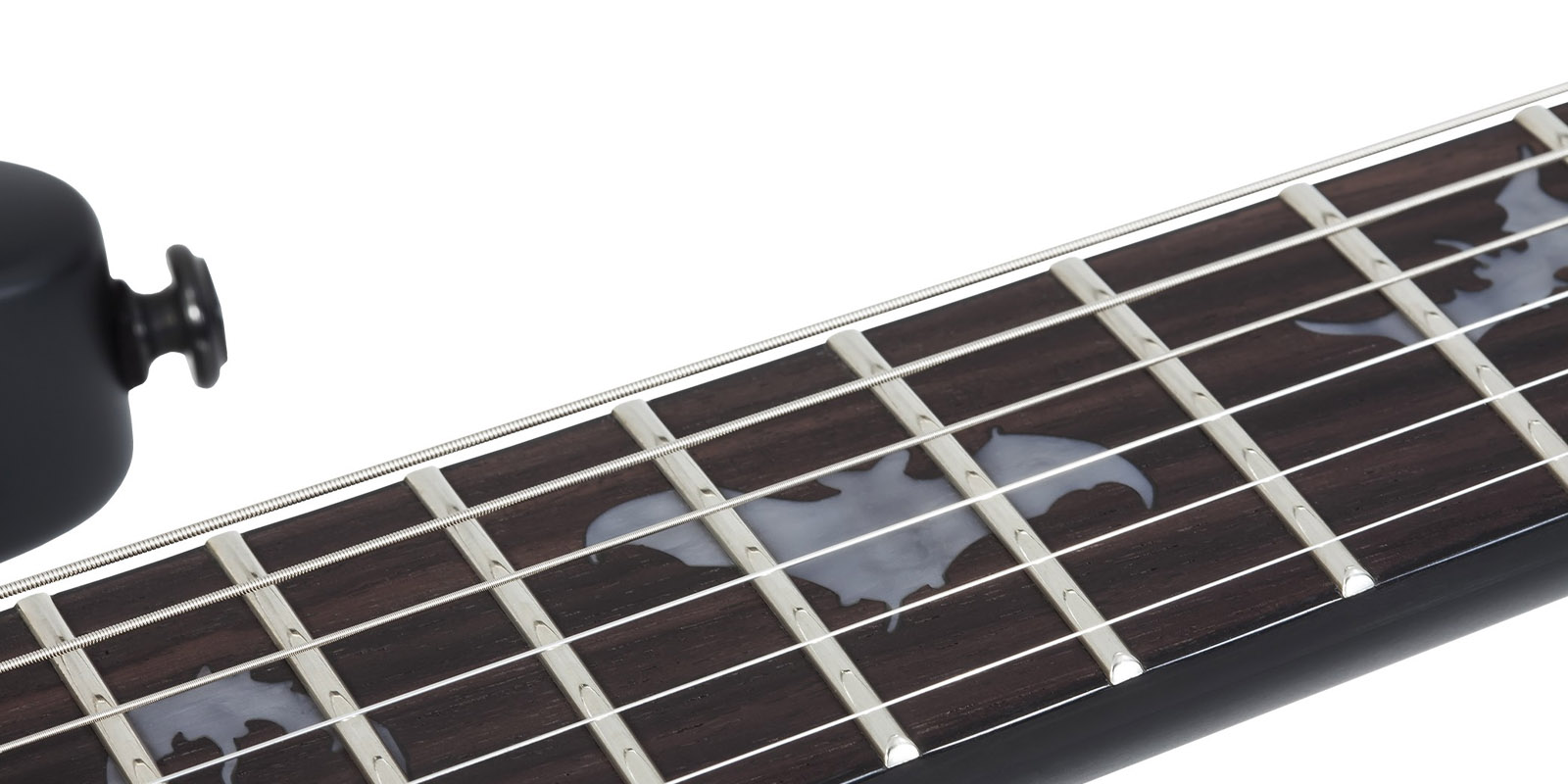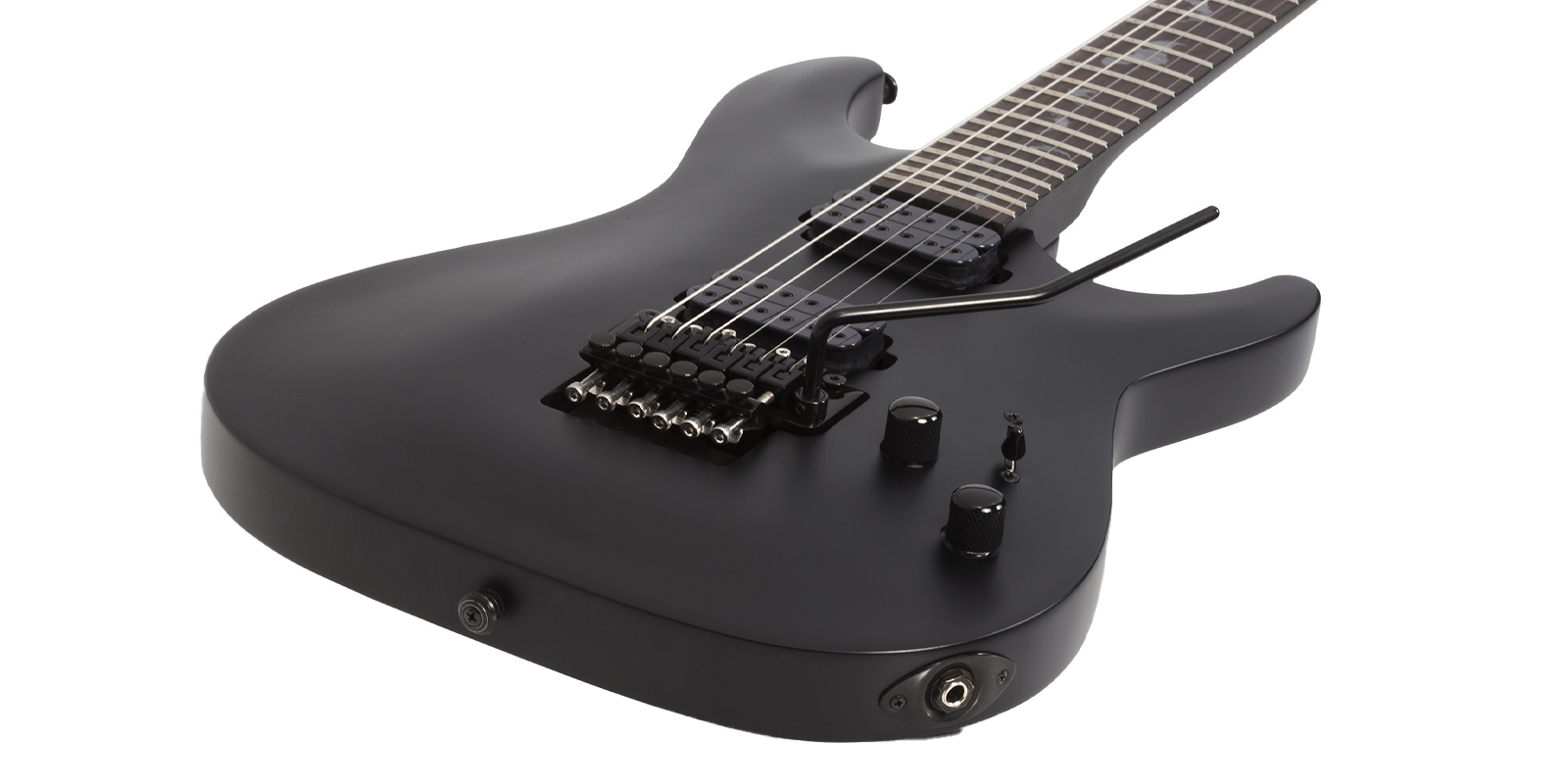 Guitarra Eléctrica Schecter DAMIEN-6 FR de cuerpo sólido es una guitarra económica de caracteristicas premium construida con cuerpo de caoba que mejora el tono y sustain, el mástil de arce de 3 piezas resiste el paso de los años. Lleva los humbuckers EMG activos y es de un rendimiento expresivo y constante por su trémolo Floyd Rose Special, además de los sintonizadores Grover Rotomatic 18:1 que brindan una afinación estable. Acabado del cuerpo Poliuretano, satín negro, radio de 14″, 24 trastes jumbo, Pastillas del mástil y puente Humbucker EMG 85 Y EMG 81. Controles 1 volumen maestro 1 tono maestro con interruptor de pastilla de 3 vias.