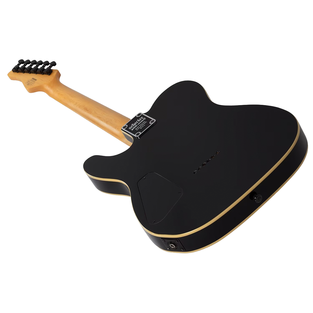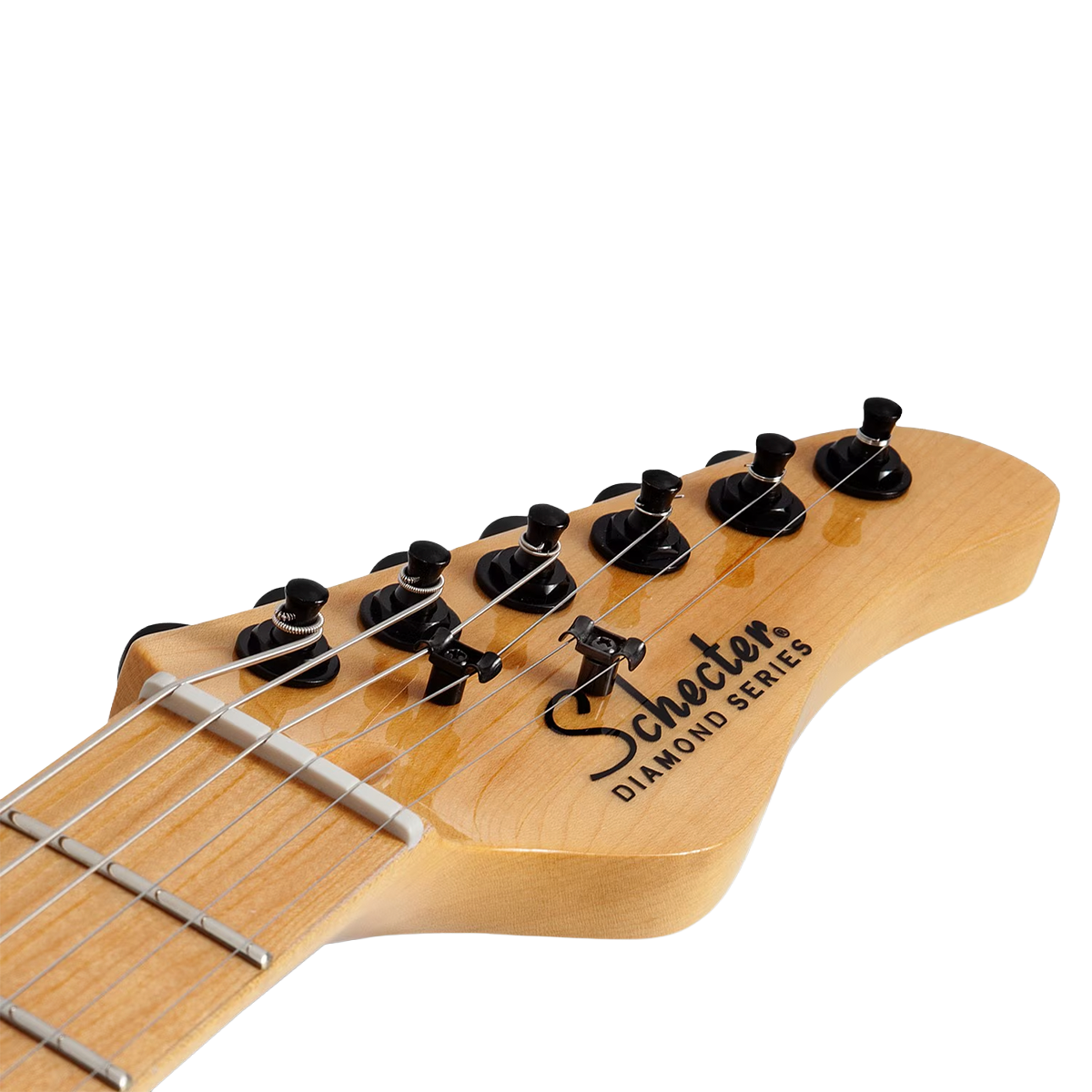 Construcción atornillada con cuerpo de aliso y tapa plana para una respuesta tonal equilibrada. Mástil y diapasón de arce con perfil “C” delgado y 22 trastes X-Jumbo, optimizados para ejecución rápida y precisa. Equipada con pastillas Schecter Diamond SuperRock-II que entregan un rango dinámico amplio y salida definida. Puente PT-H con cuerdas a través del cuerpo para mayor sustain y hardware negro de alta durabilidad.