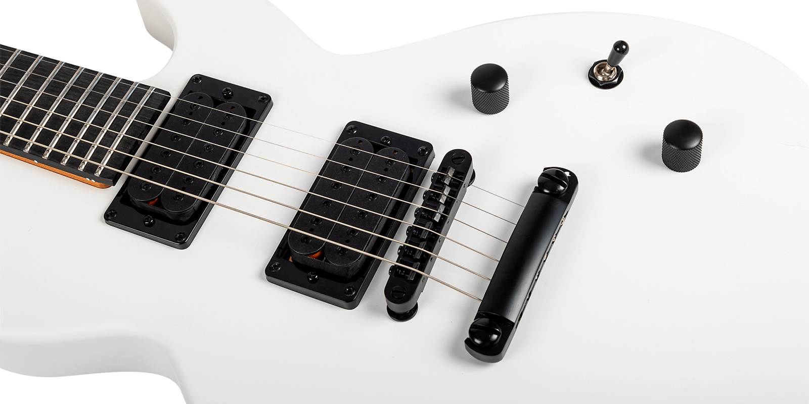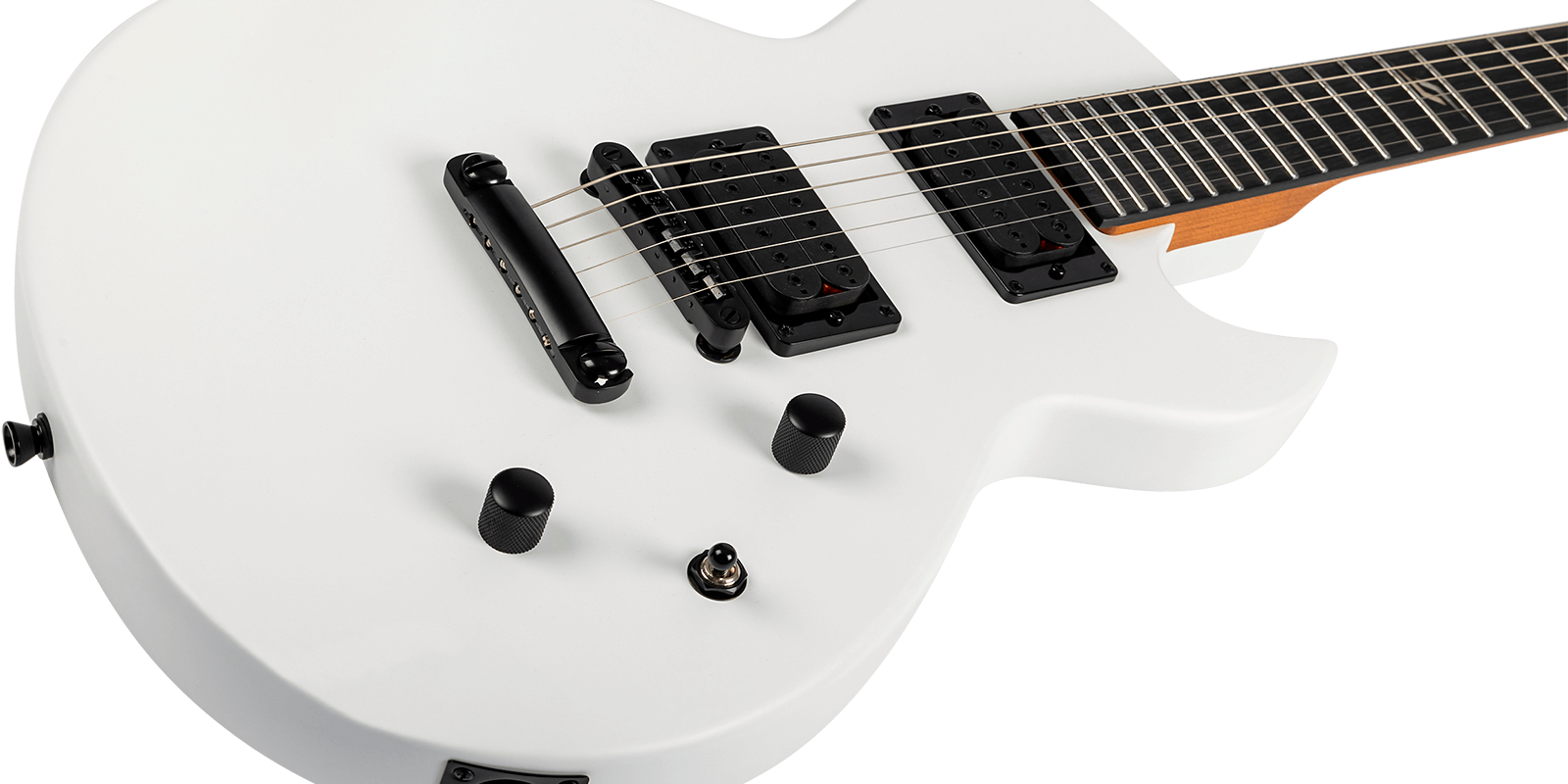 Equipada con un set de humbuckers de salida media/alta (12k, imanes cerámicos), la L-400 entrega un tono contundente y versátil que se adapta a entornos de alta ganancia sin perder definición en pasajes más limpios. Su puente fijo y el hardware de precisión ofrecen afinación estable y entonación confiable tanto en estudio como en directo.