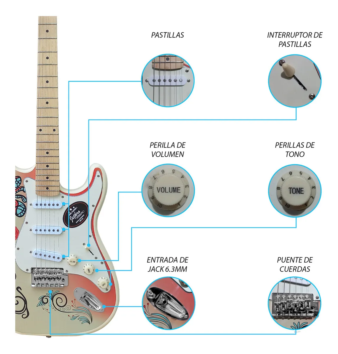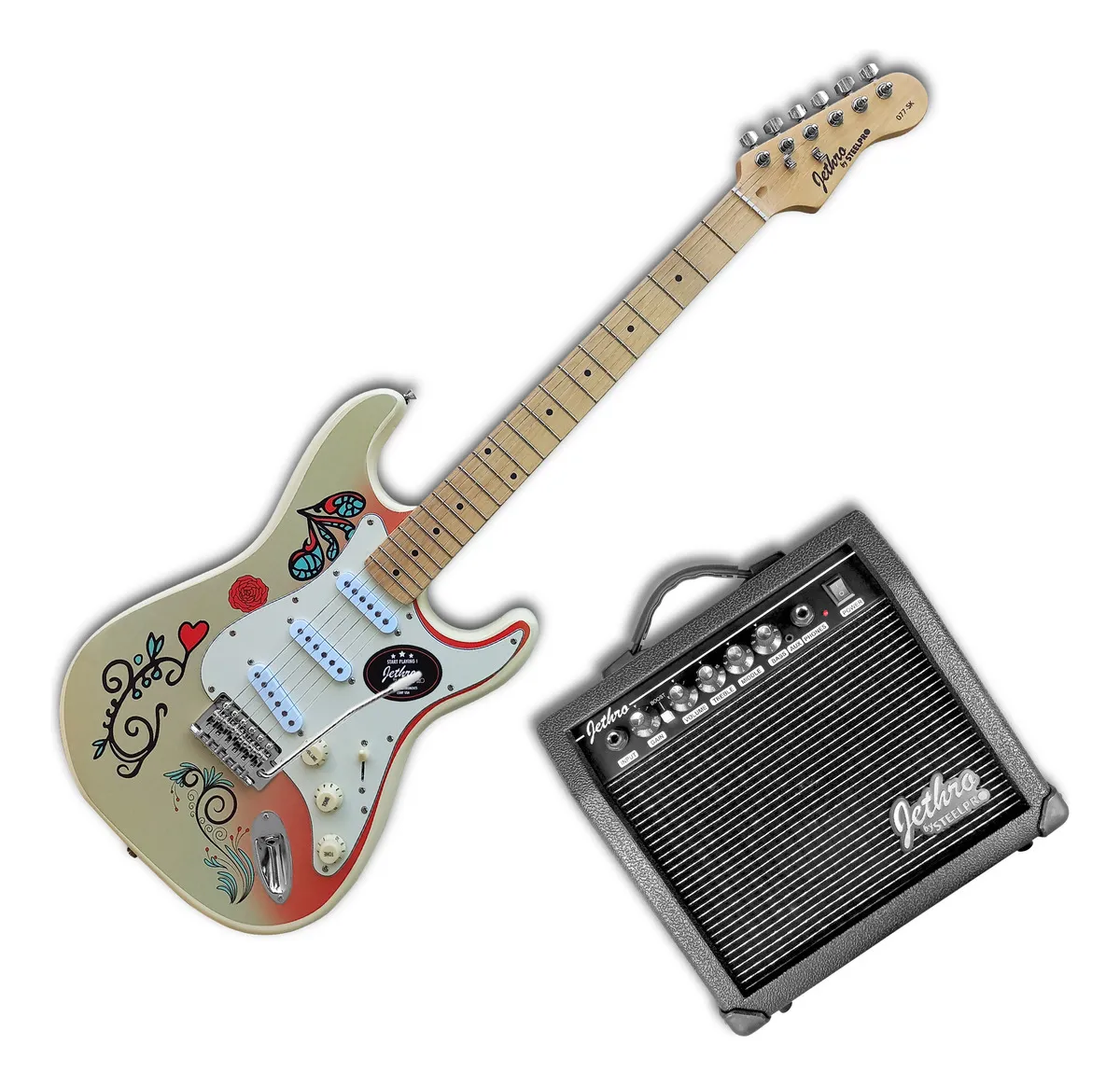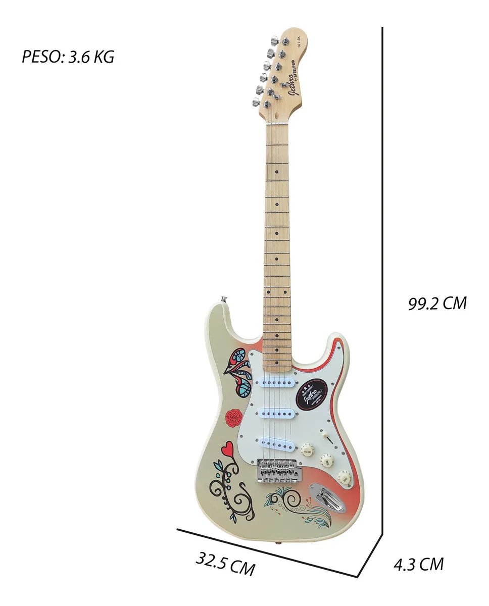 Guitarra STEELPRO Ivory Decal 077-SK. Estética llamativa con Decal Ivory. Ideal para principiantes o uso recreativo.