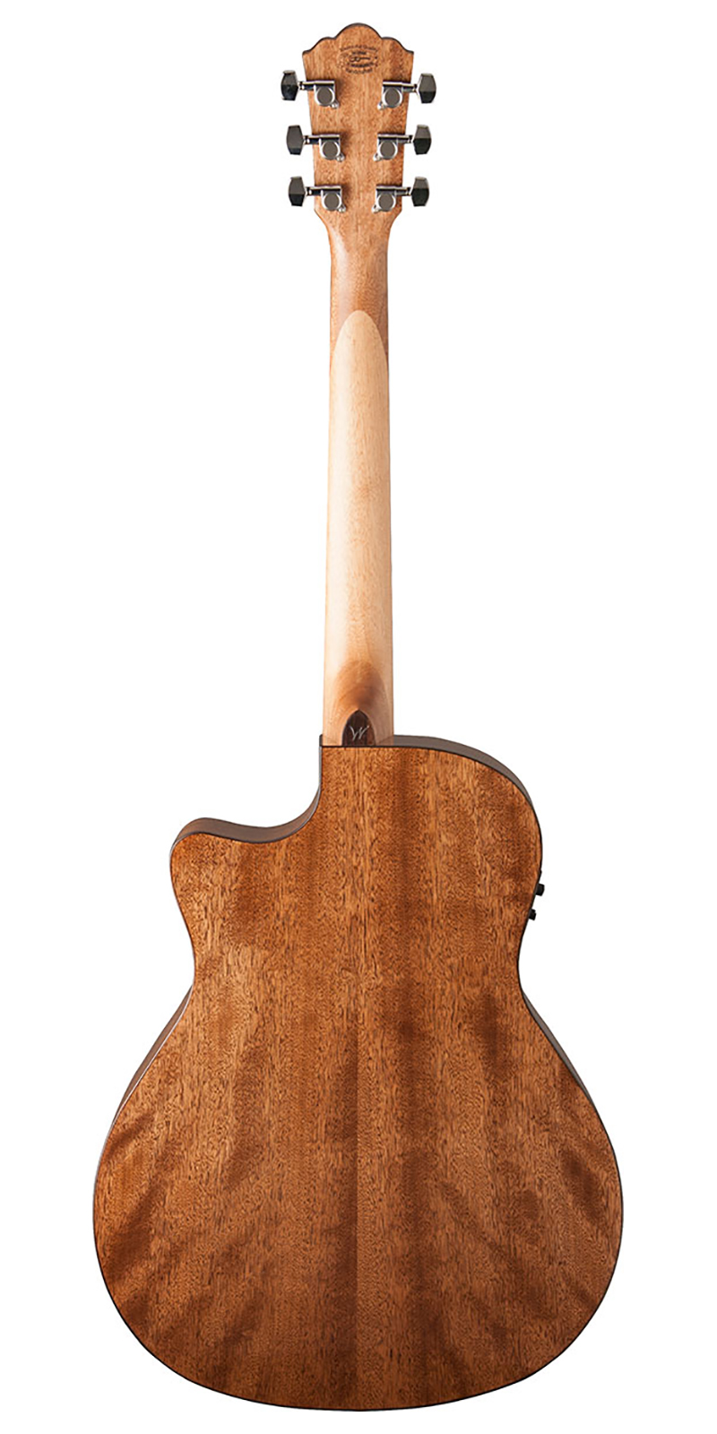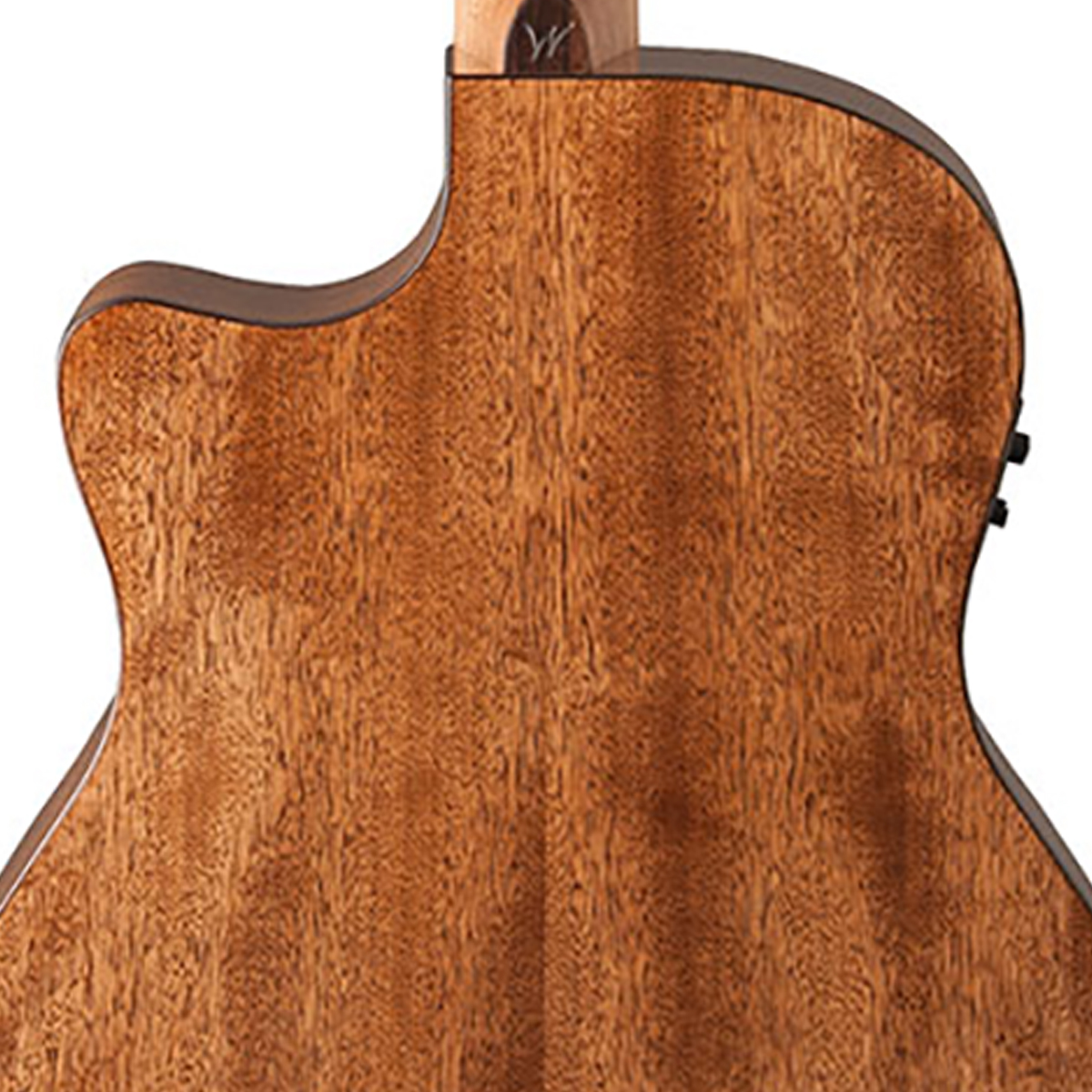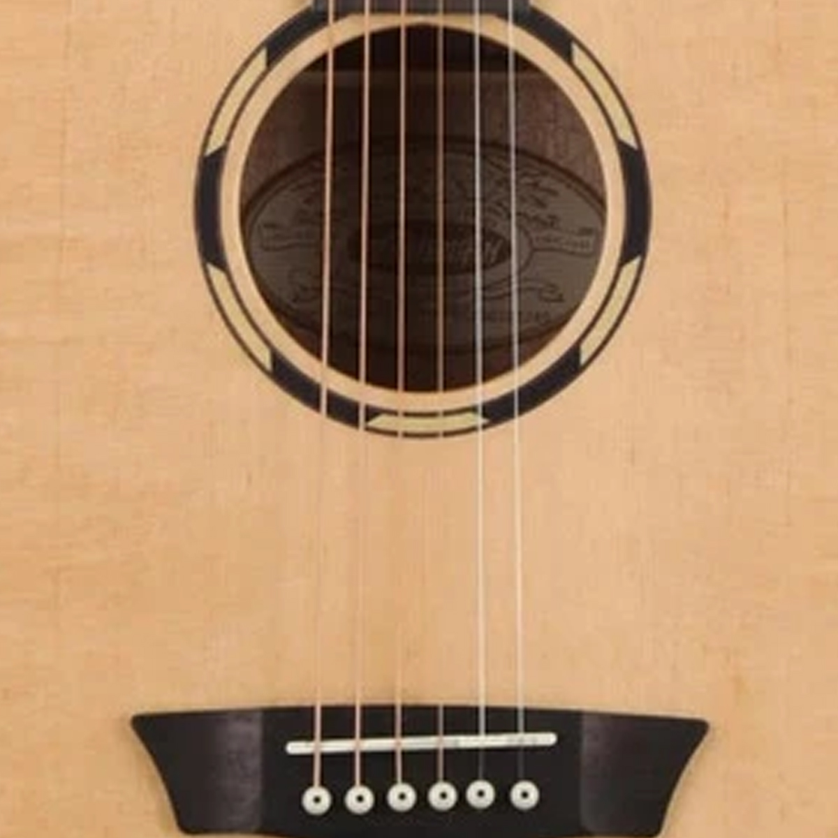 Guitarra electroacústica tamaño orquesta, cutaway, cuerpo de abeto sitka sólido, aros y fondo de caoba, refuerzo Cathedral Peaked Scalloped-X, roseta Washburn Parquet, brazo de caoba satinada con alma de 2 vías, diapasón de ovangkol, 20 trastes, incrustaciones de puntos, cejuela Graphtech Nubone de 1-11/16 de ancho, escala: 25-5/16, preamplificador Fishman Presys II 301T con afinador, terminado al alto brillo, hardware cromado, puente de ovangkol, maquinaria diecast cromada.