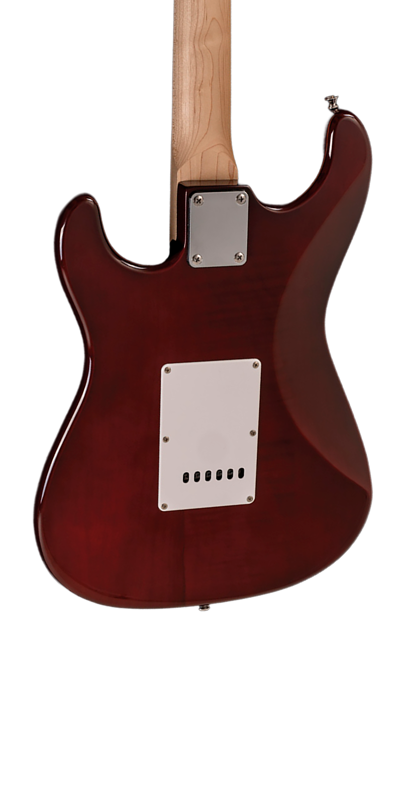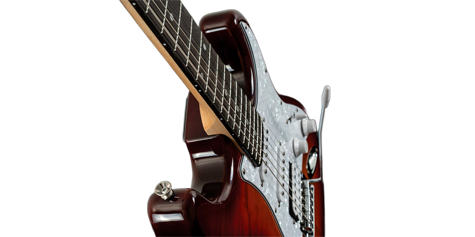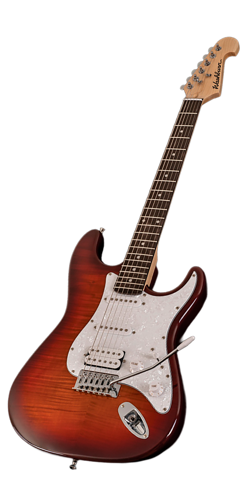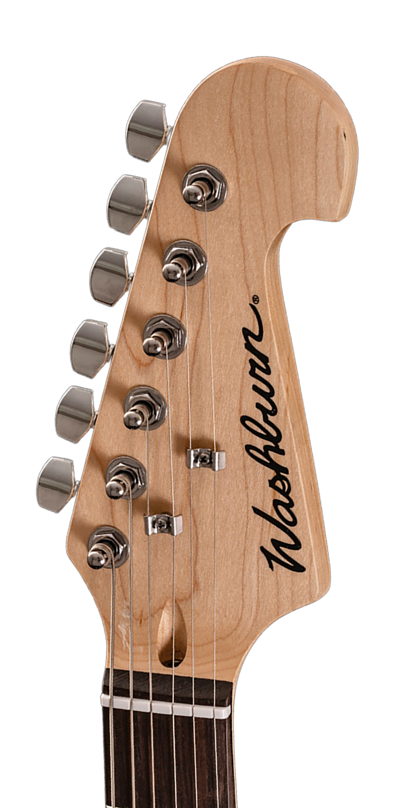 La Washburn Sonamaster Deluxe es una guitarra eléctrica de cuerpo sólido con construcción de okoume y tapa de flame maple. Equipada con configuración H-S-S, ofrece versatilidad sonora para solos, acordes potentes y técnica de fingerpicking.