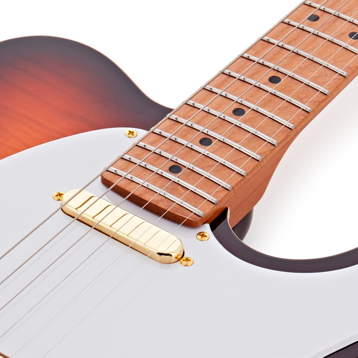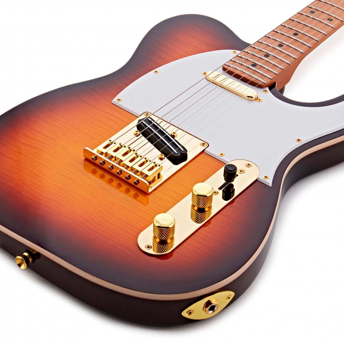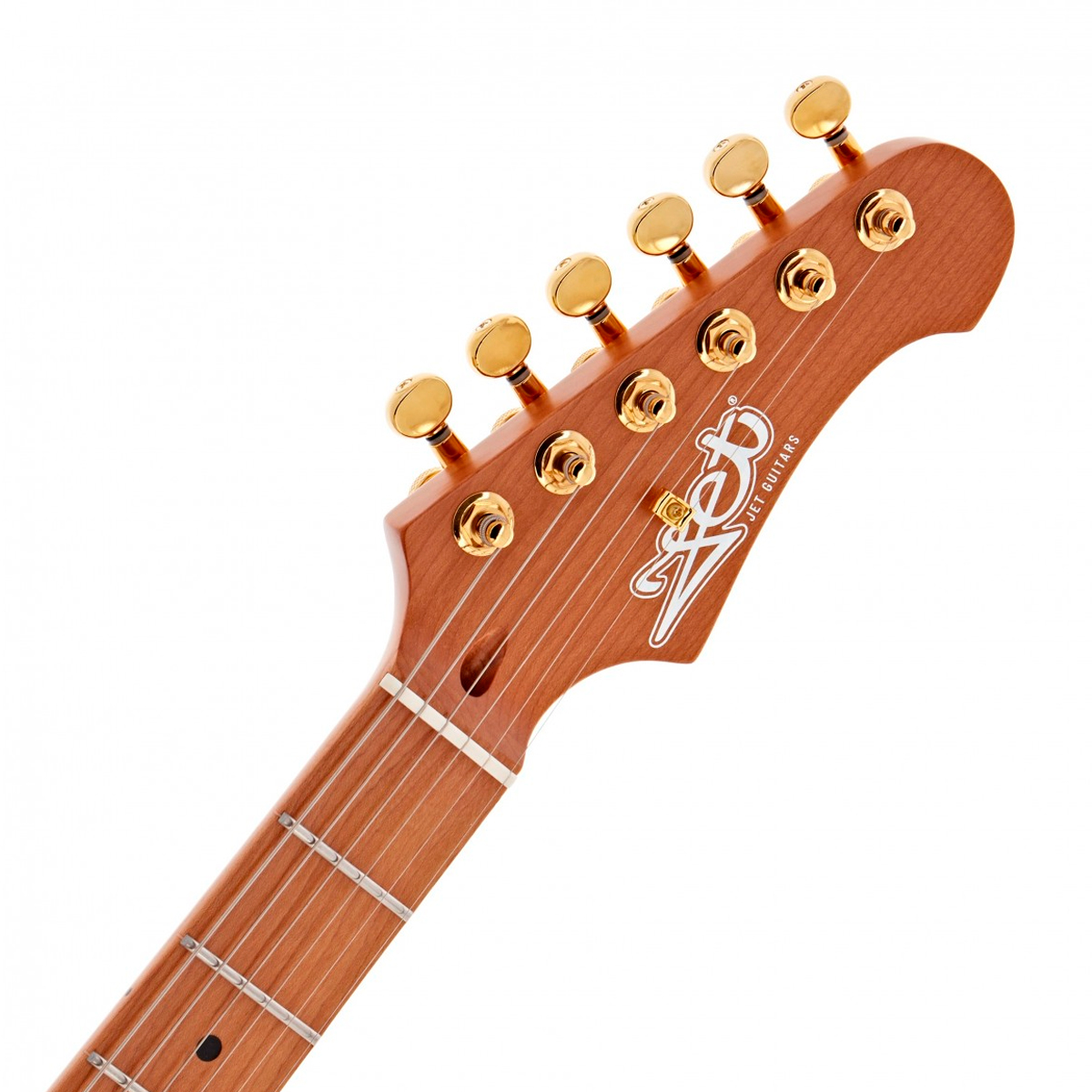 La Jet Guitars JT600 combina la esencia clásica T-Style y S-Style con un diseño contemporáneo y meticuloso. Su cuerpo de caoba con tapa de arce flame ofrece una resonancia rica y equilibrada, mientras que el mástil de caoba con perfil ‘Modern C’ y diapasón de arce tostado aseguran una ejecución suave y cómoda. Equipada con pastillas Jet J-Rail en el puente y Alnico Single Coil en el mástil, junto con controles precisos de volumen y tono y un interruptor de 3 vías, esta guitarra ofrece un sonido versátil y dinámico. Los herrajes en acabado gold, la cejuela de hueso y las clavijas cromadas complementan su estética elegante y funcional. Ideal para músicos que buscan tanto calidad sonora como un diseño inspirado y bien construido.